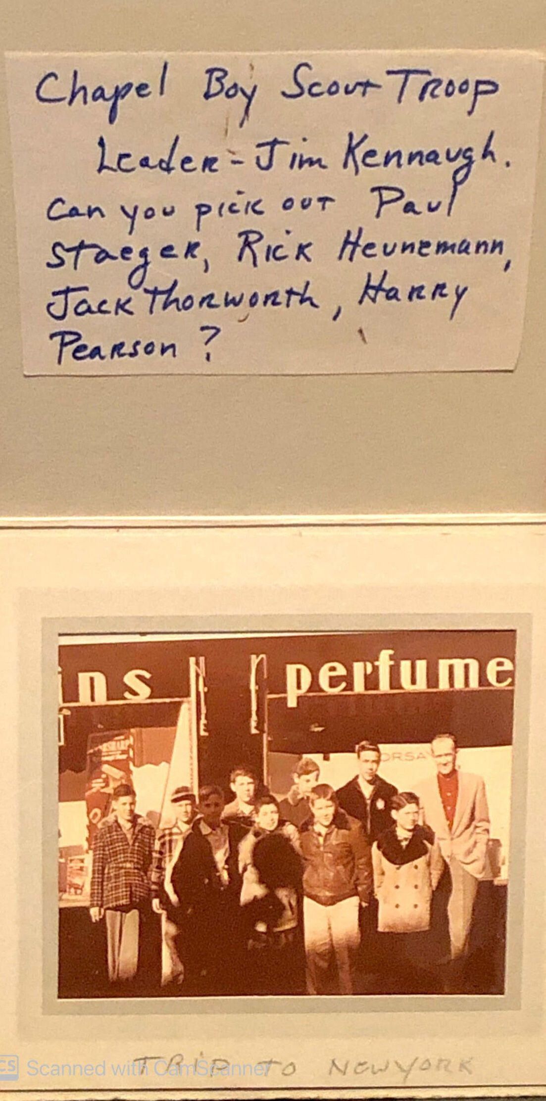 Photo of boy scouts from the troop associated with the White Oak Ridge Chapel on a trip in New York City.