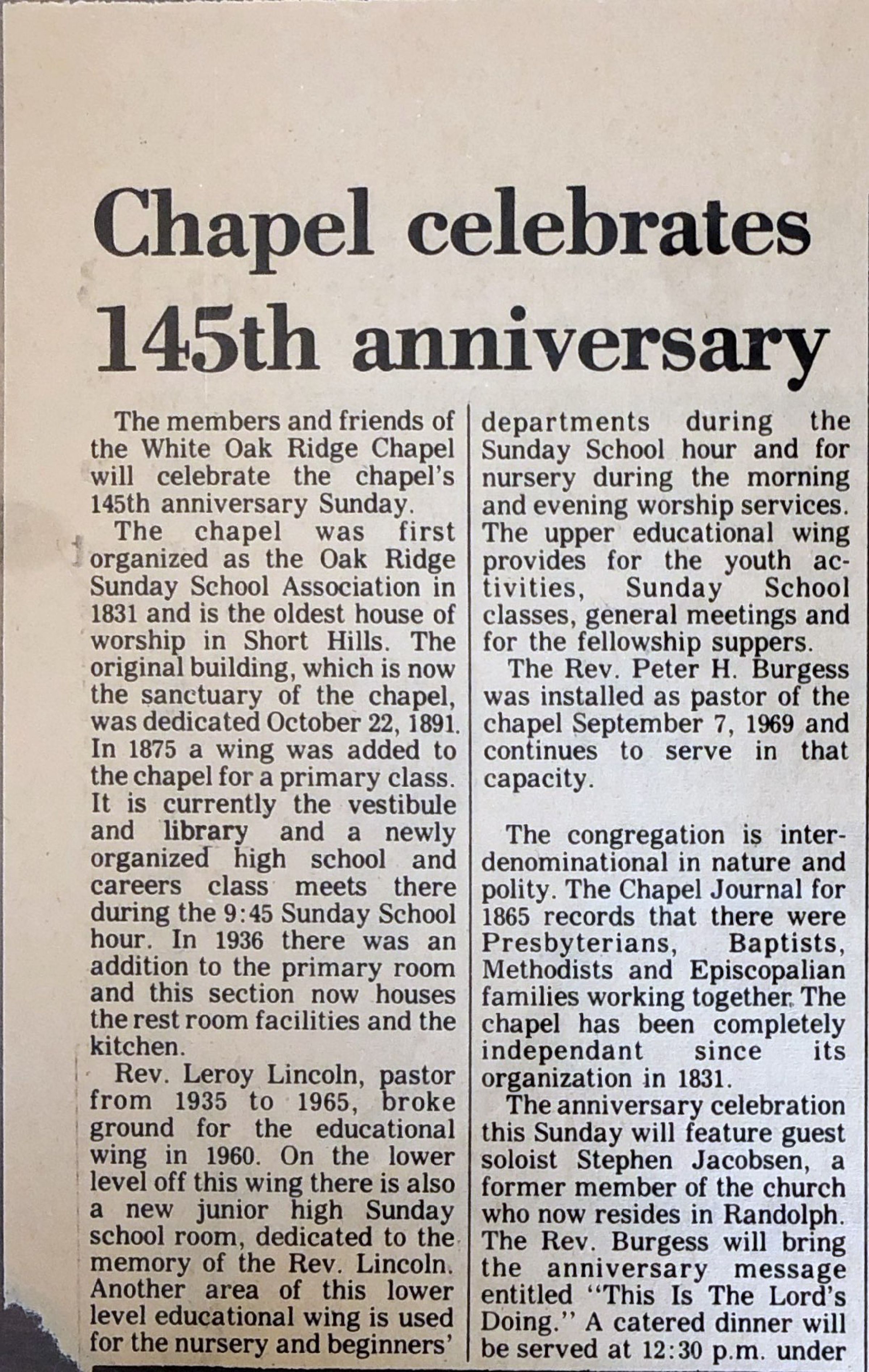 White Oak Ridge Chapel News ClippingsEntry/Object ID