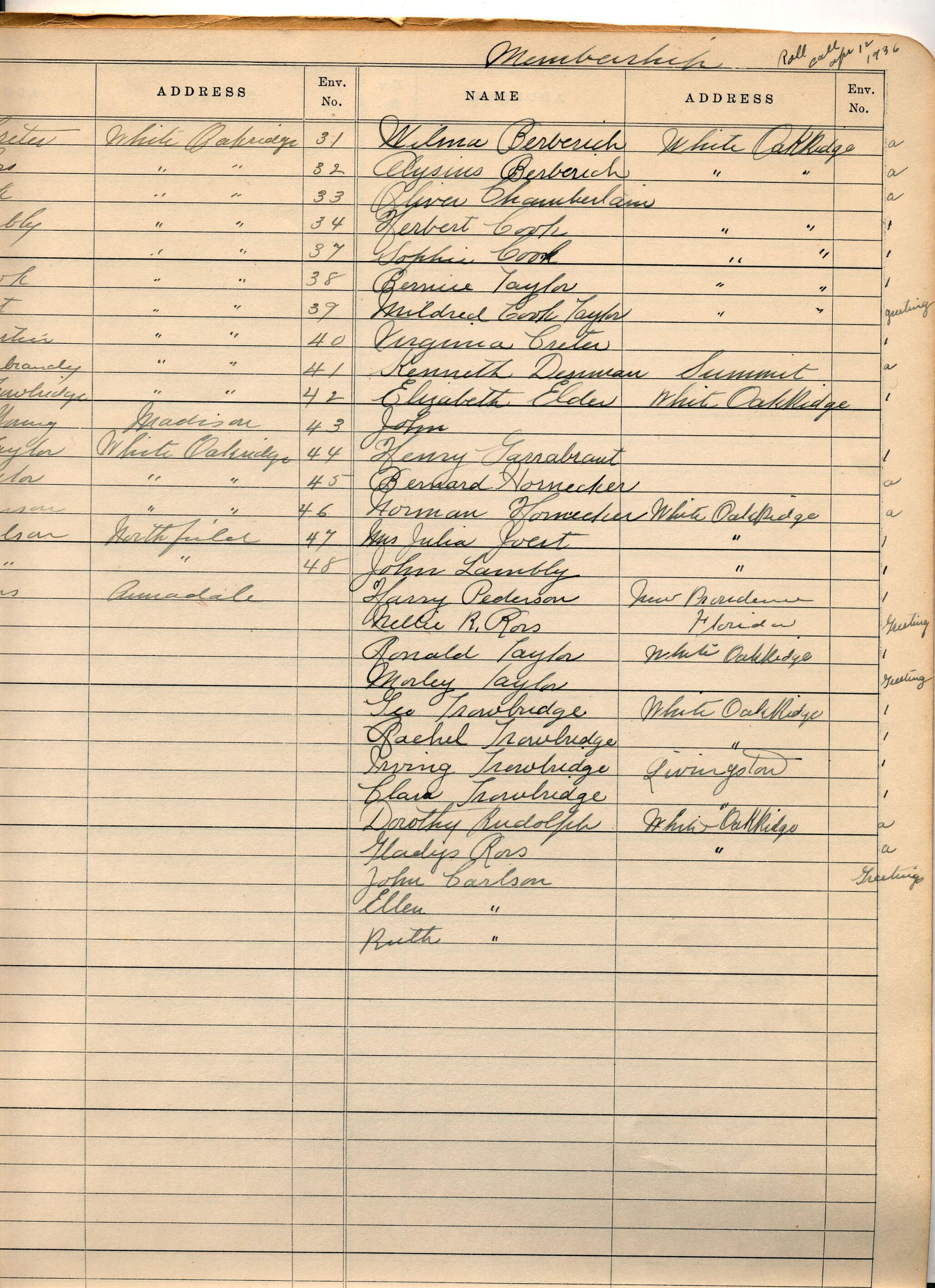 White Oak Ridge Chapel: Treasurers Book Chamberlain