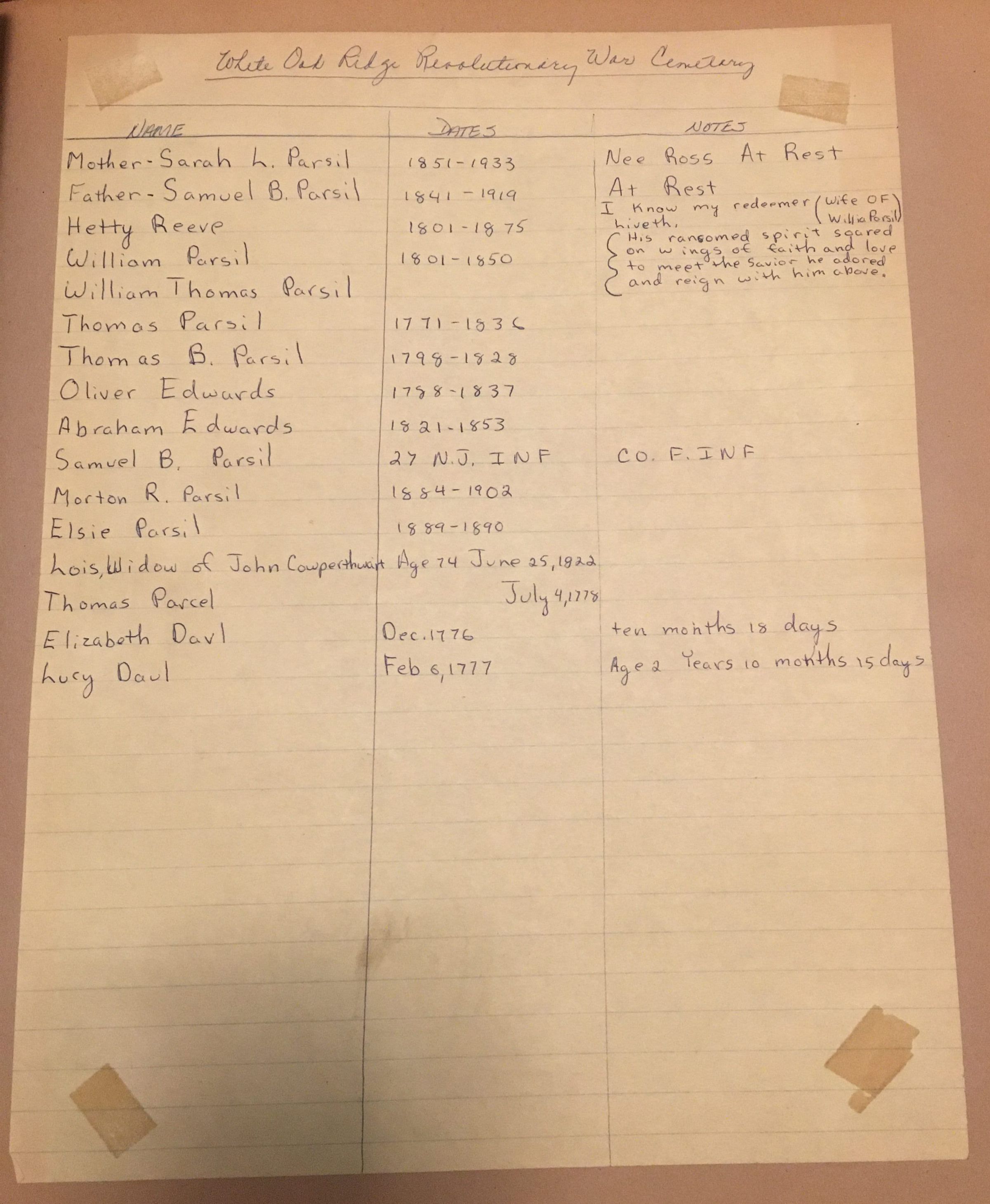 Parsil: White Oak Ridge Revolutionary War Cemetery Listing