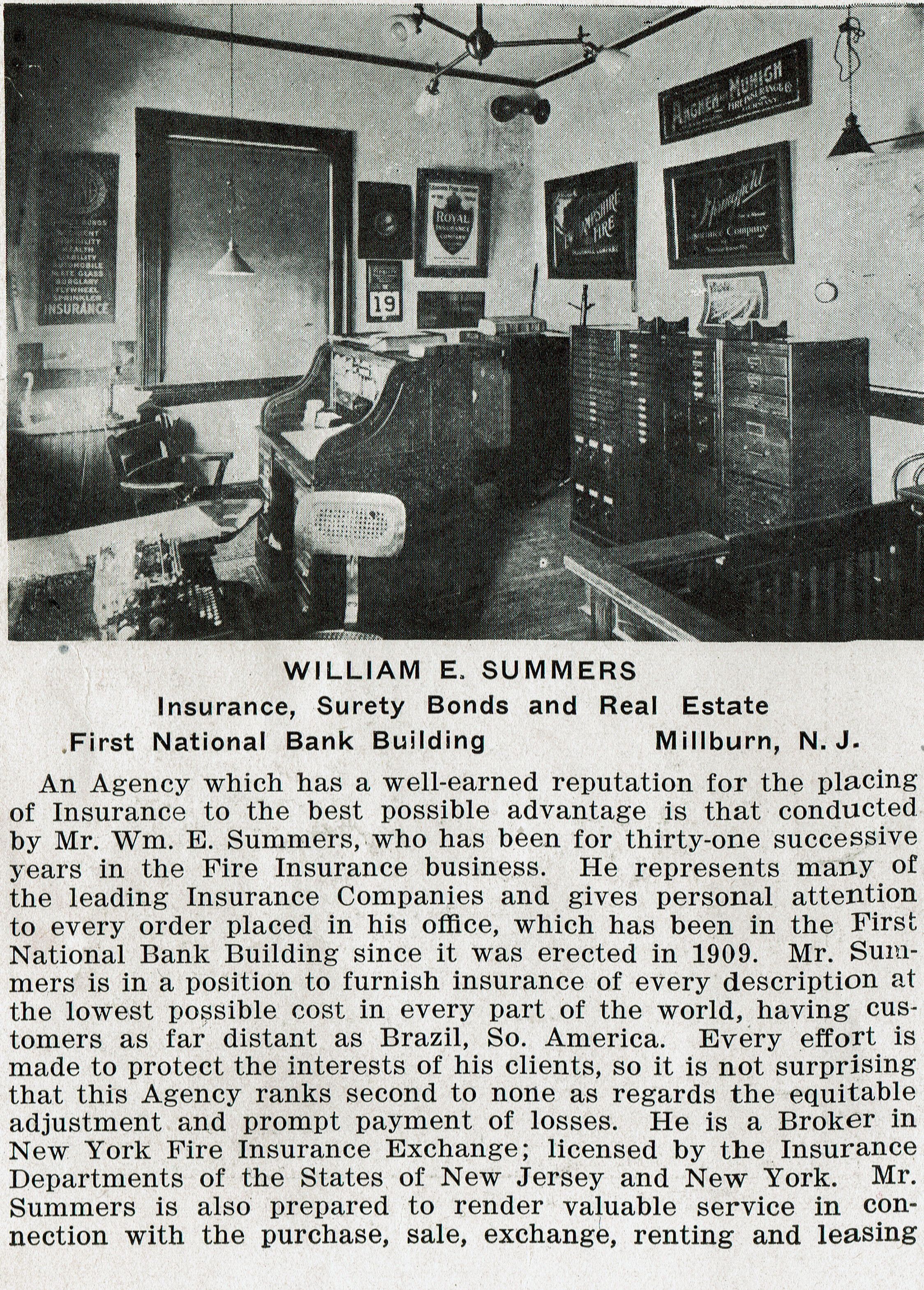 William E. Summers, Insurance and Real Estate, c. 1915Description