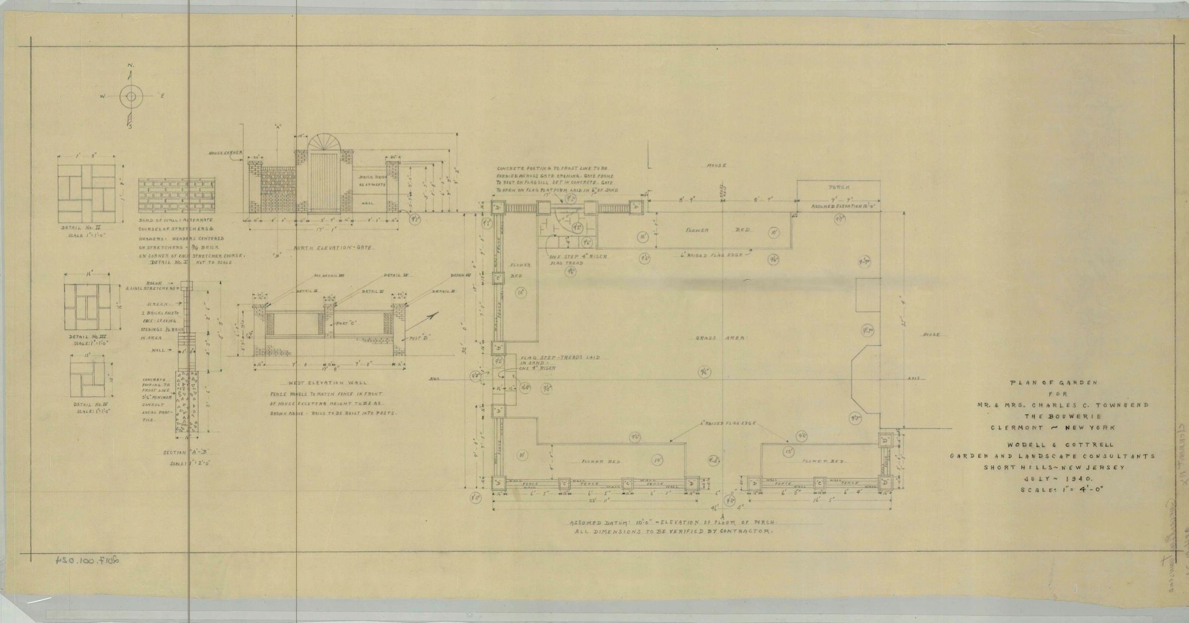 Woddell and Cottrell plan of garden for Mr. and Mrs. Charles C. Townsend, "The Bouwerie," Clermont, New York, July 1940.Collection