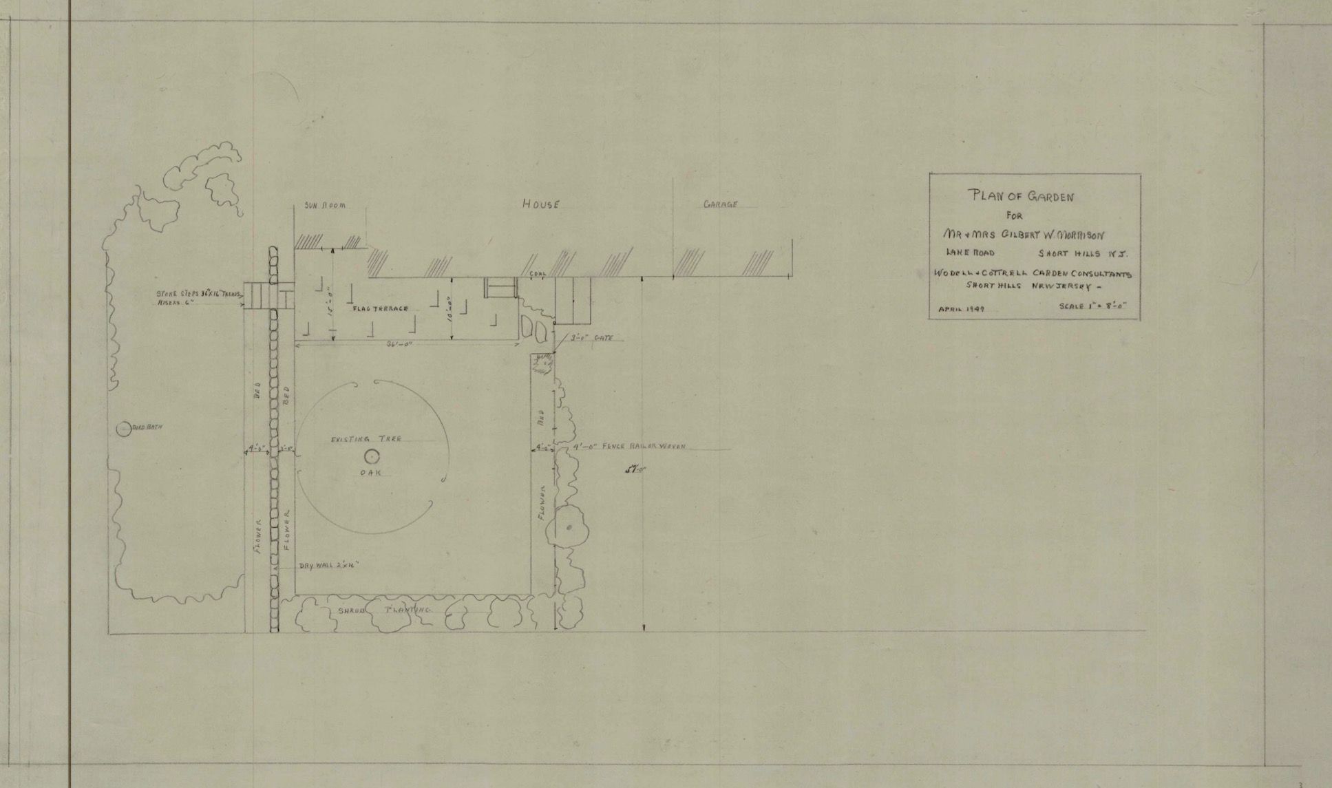 Wodell and Cottrell plan of garden for Mr. and Mrs. Gilbert W. Morrison, Lake Road, Short Hills, New Jersey, April 1947.Collection