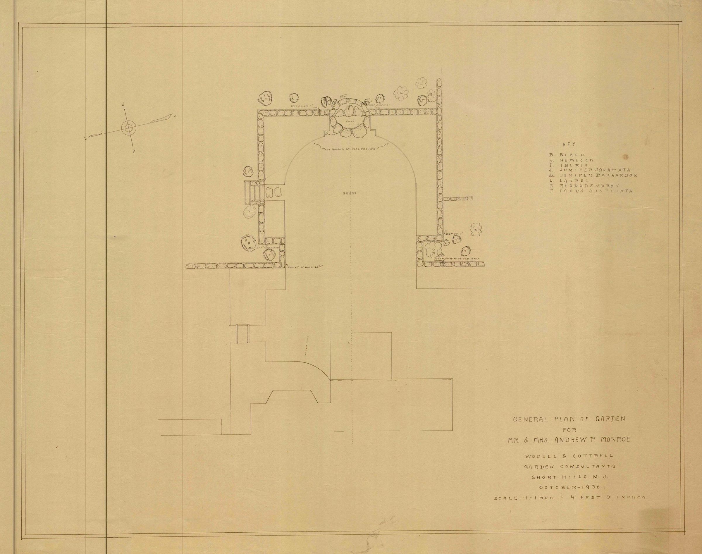 Wodell and Cottrell general plans for garden for Mr. and Mrs. Andrew P. Monroe, Taylor Road, Short Hills, New Jersey, October 1936.Collection