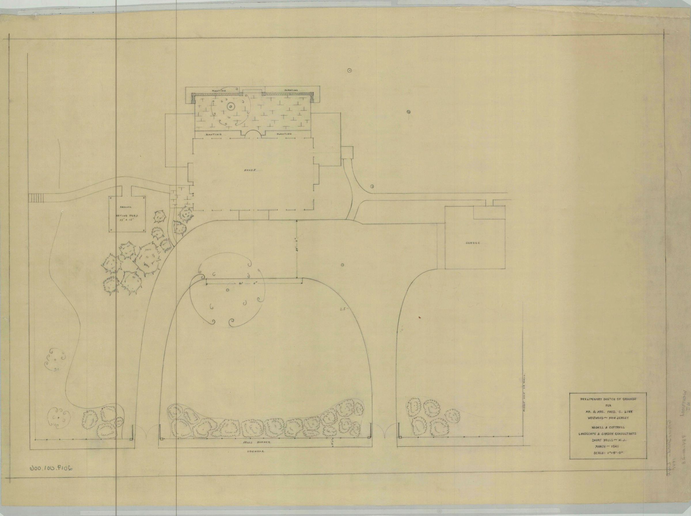 Wodell & Cottrell Preliminary Sketch of Grounds for Mr. and Mrs. Fred C. Link, Westwood, New Jersey, March 1941.Collection