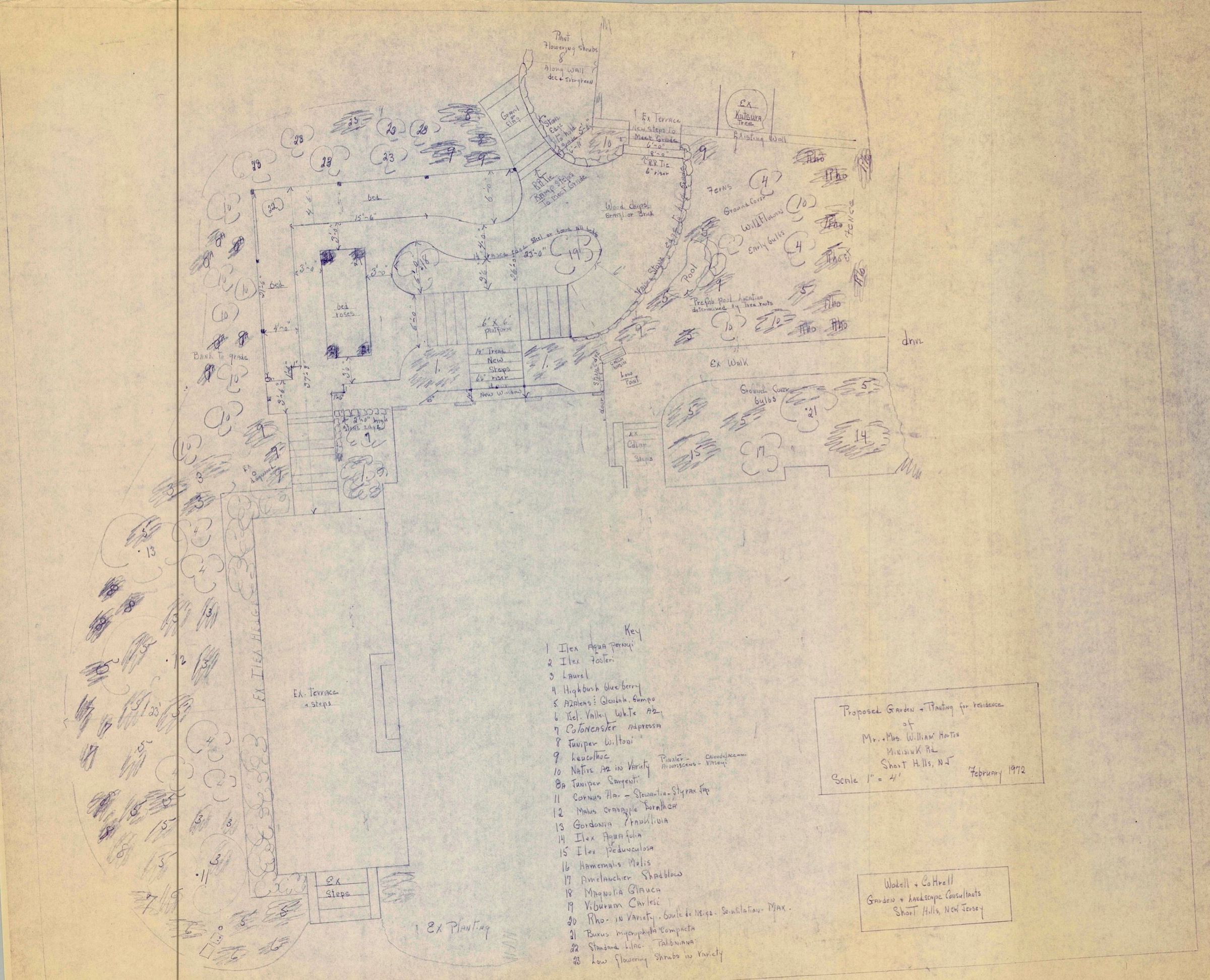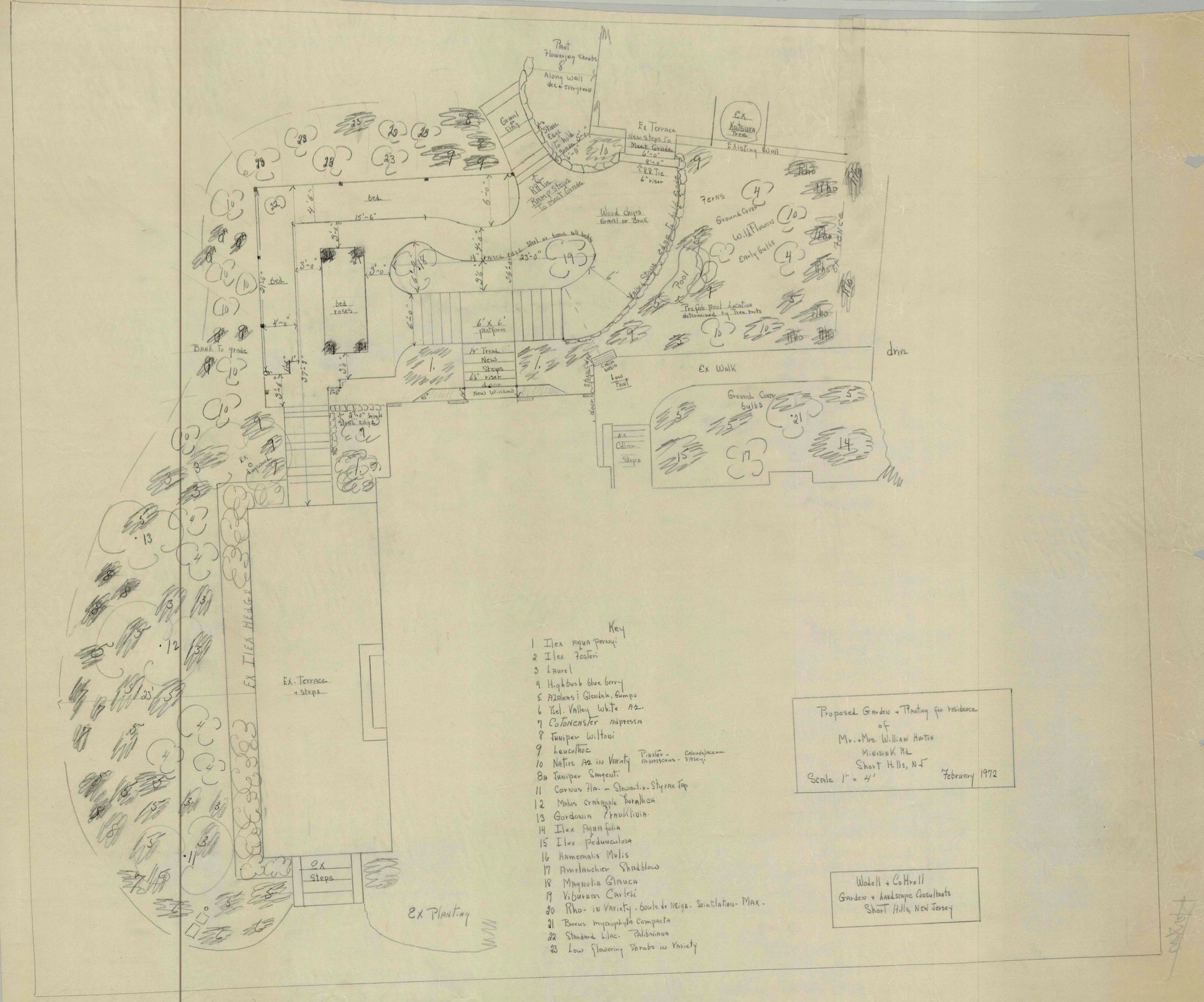 Wodell and Cottrell Proposed Garden and Planting for the residence of Mr. and Mrs. William L. Horton, 1 Minnisink Road, Short Hills, New Jersey, February 1972.Collection