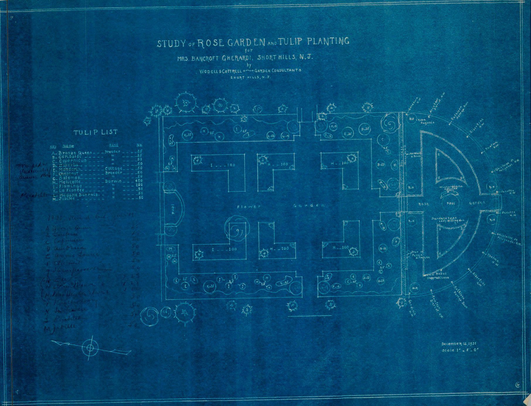 Wodell and Cottrell study of rose garden and tulip planting for Mrs. Bancroft Gherardi, Short Hills, New Jersey, December 12, 1931.Collection