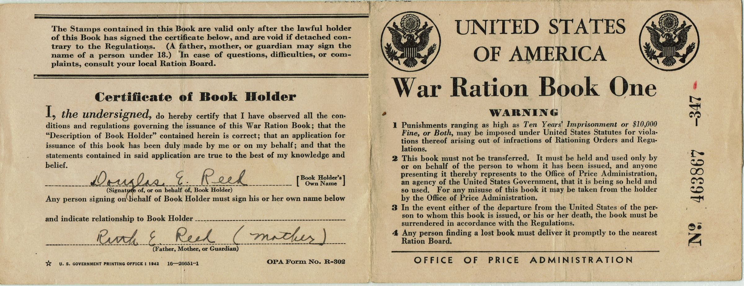 World War 2 Ration Books: Douglas Reed & Ruth E. ReedEntry/Object ID