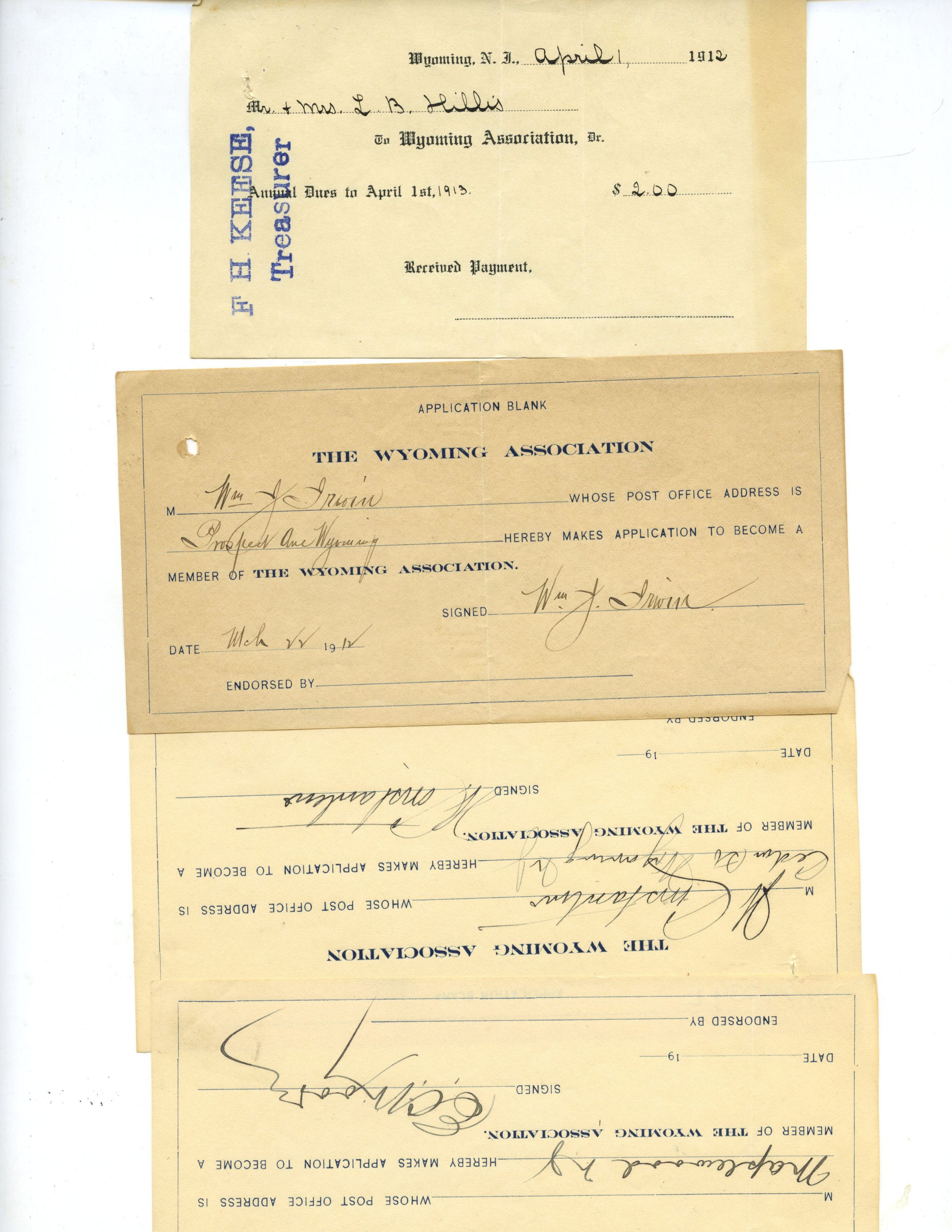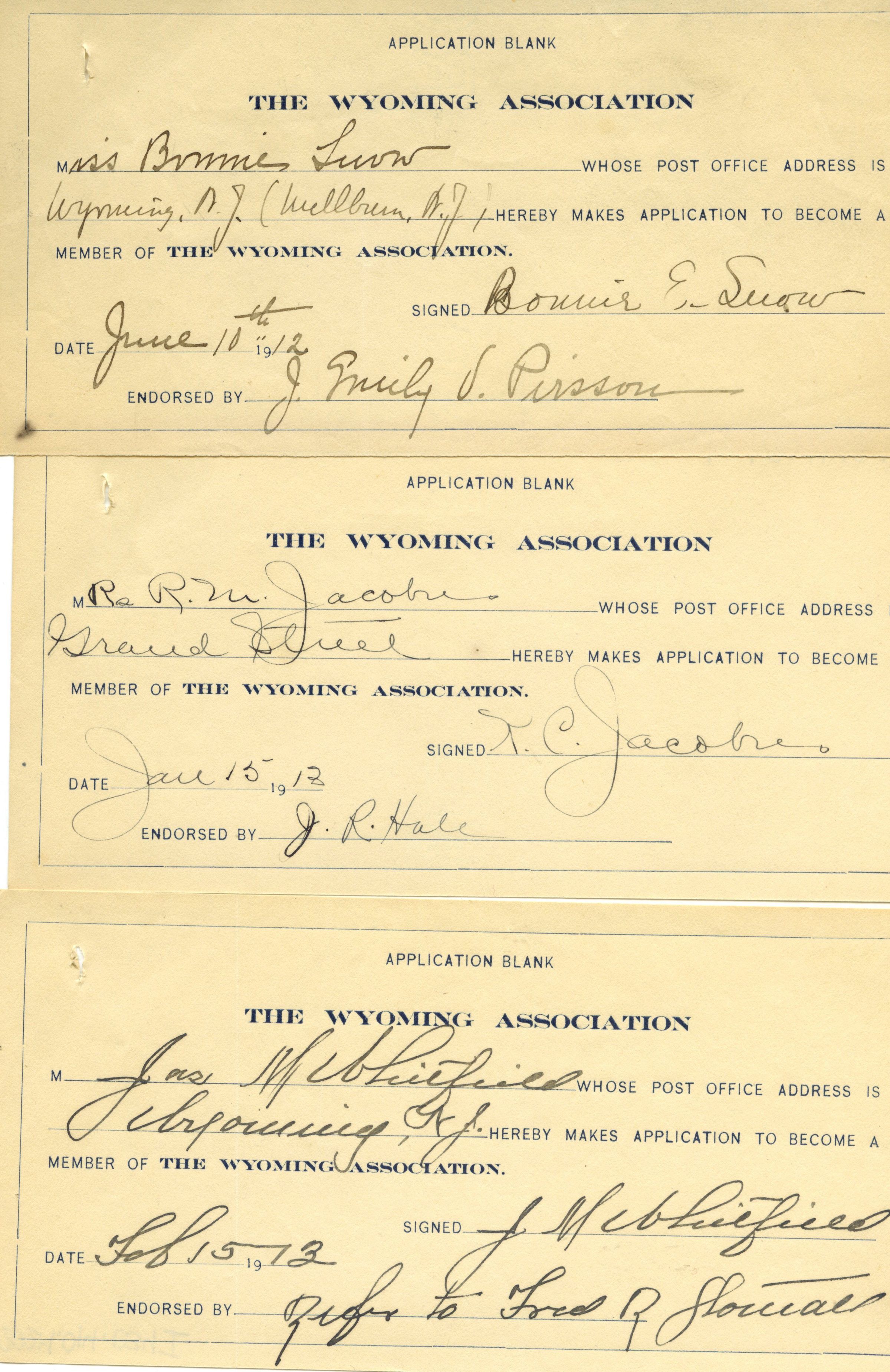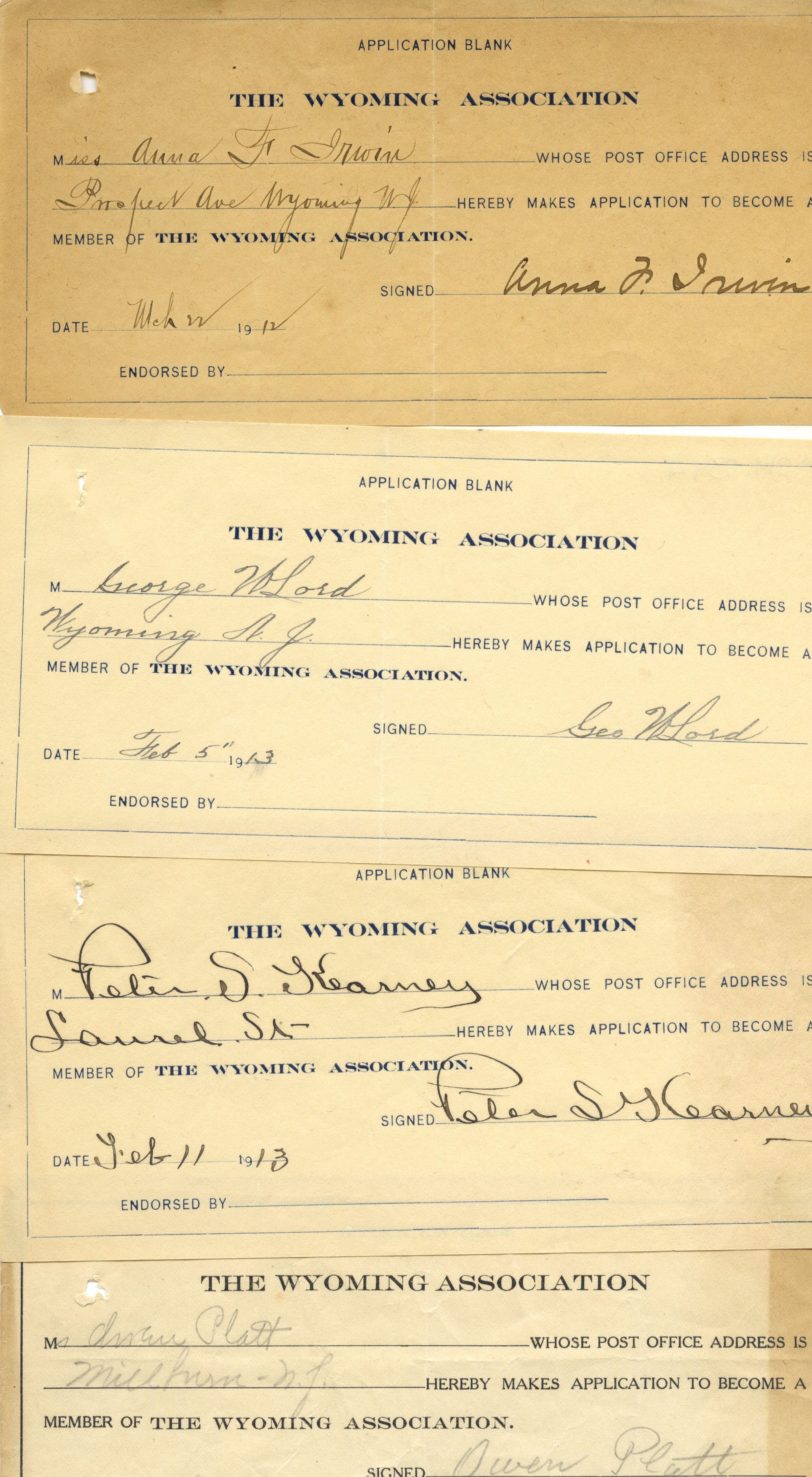 Wyoming Civic Association: Application Blanks, 1912-13Entry/Object ID