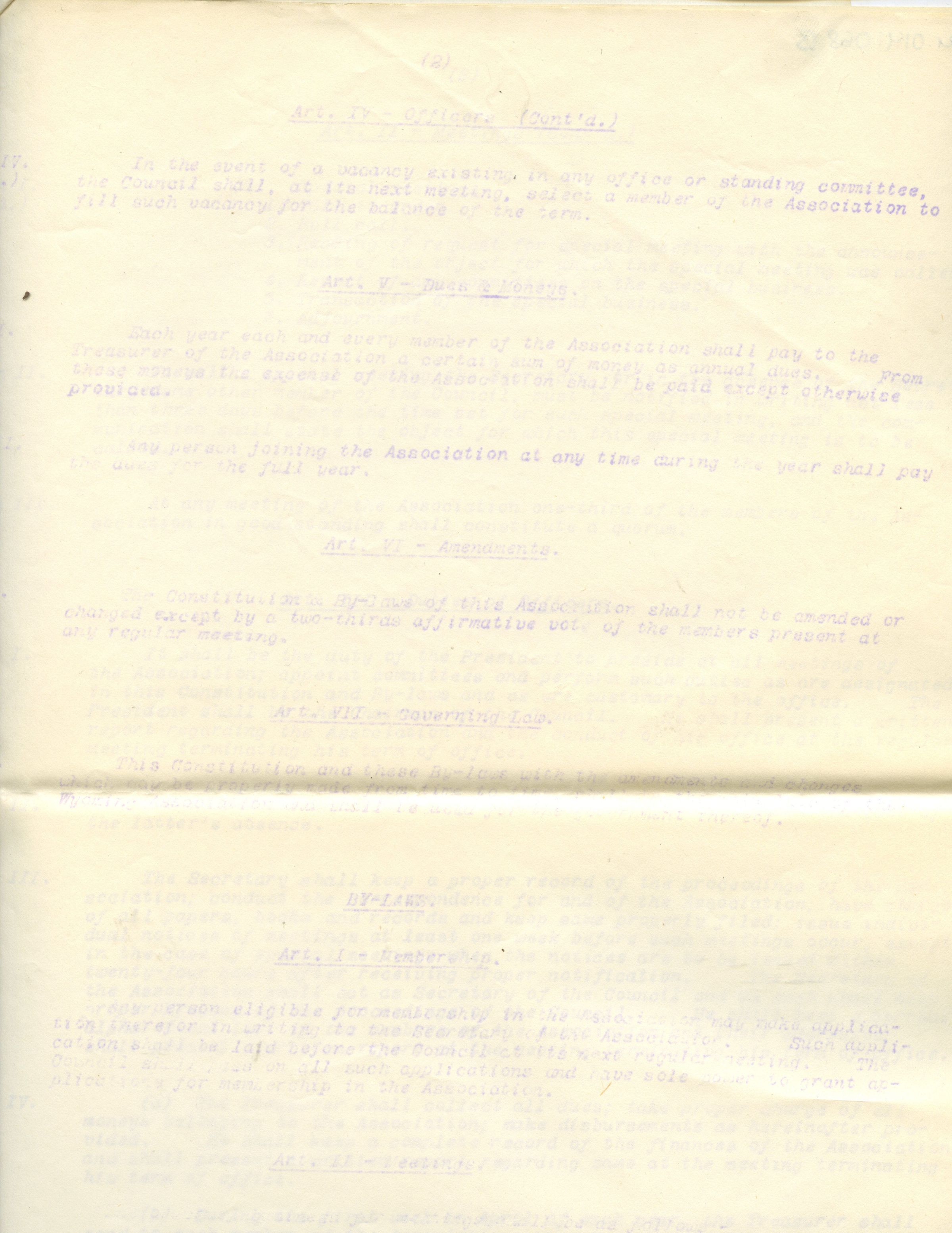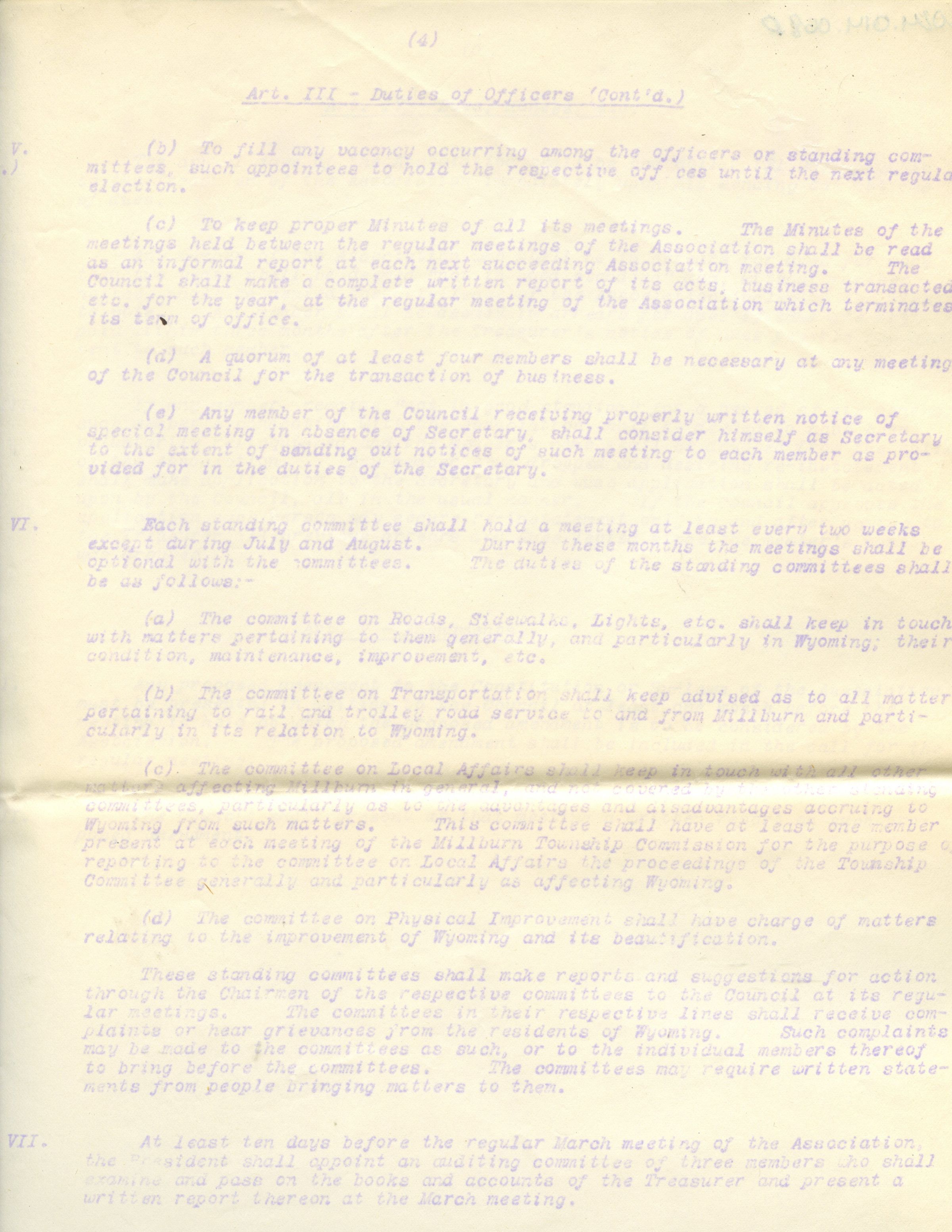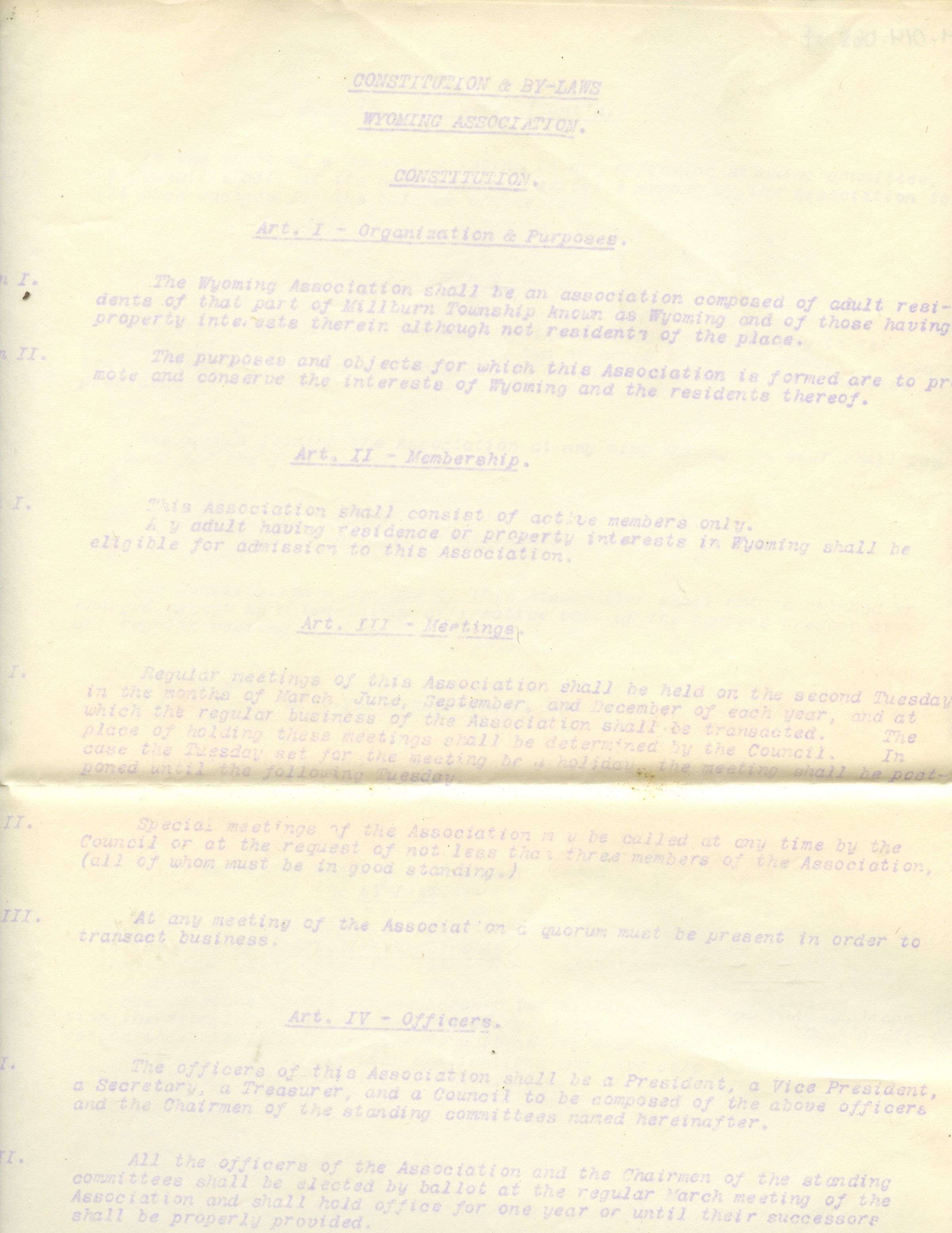 5 page typewritten copy of the The Wyoming Civic Association Constitution and By-LawsCollection