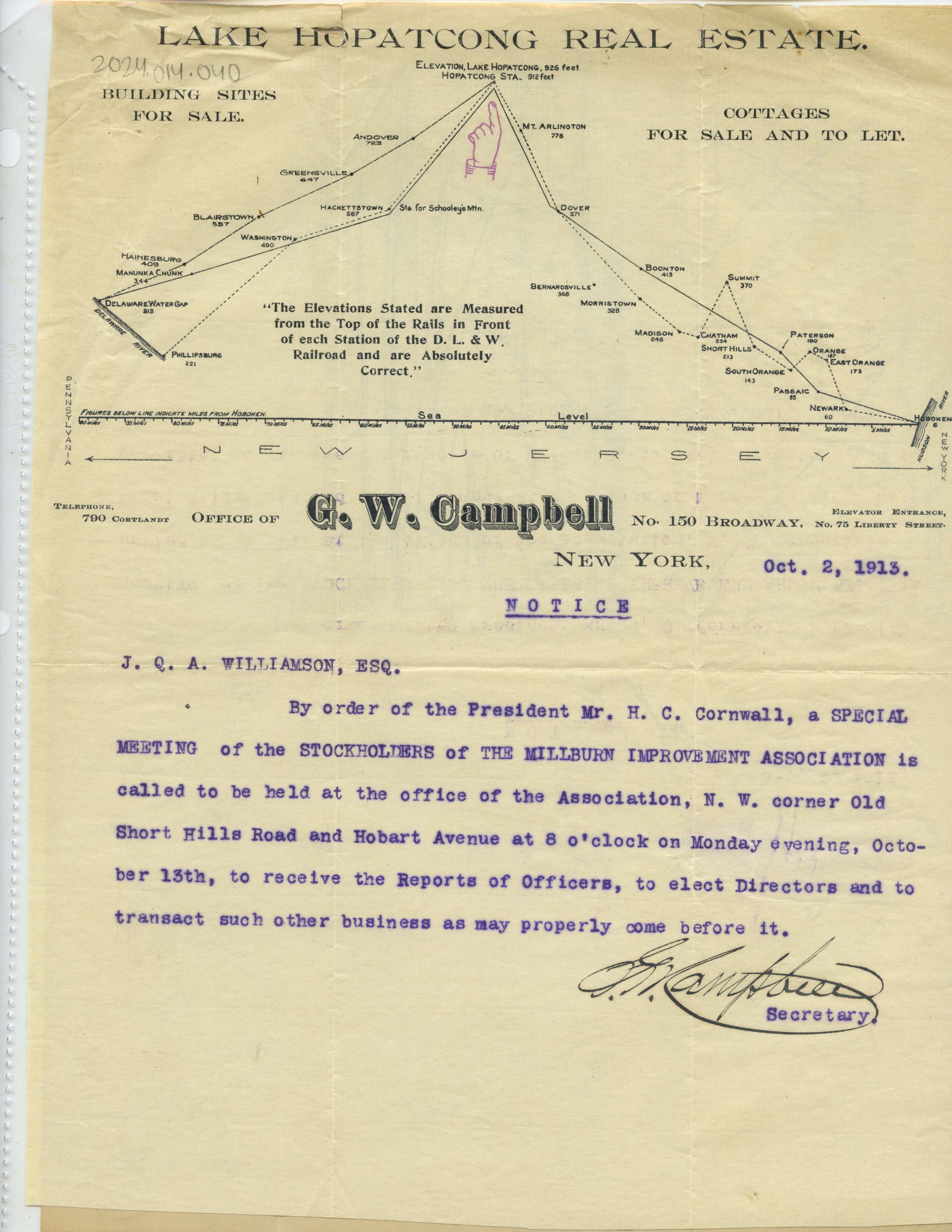 Wyoming Civic Association: G.W. Campbell Real Estate Letter, 1913Entry/Object ID