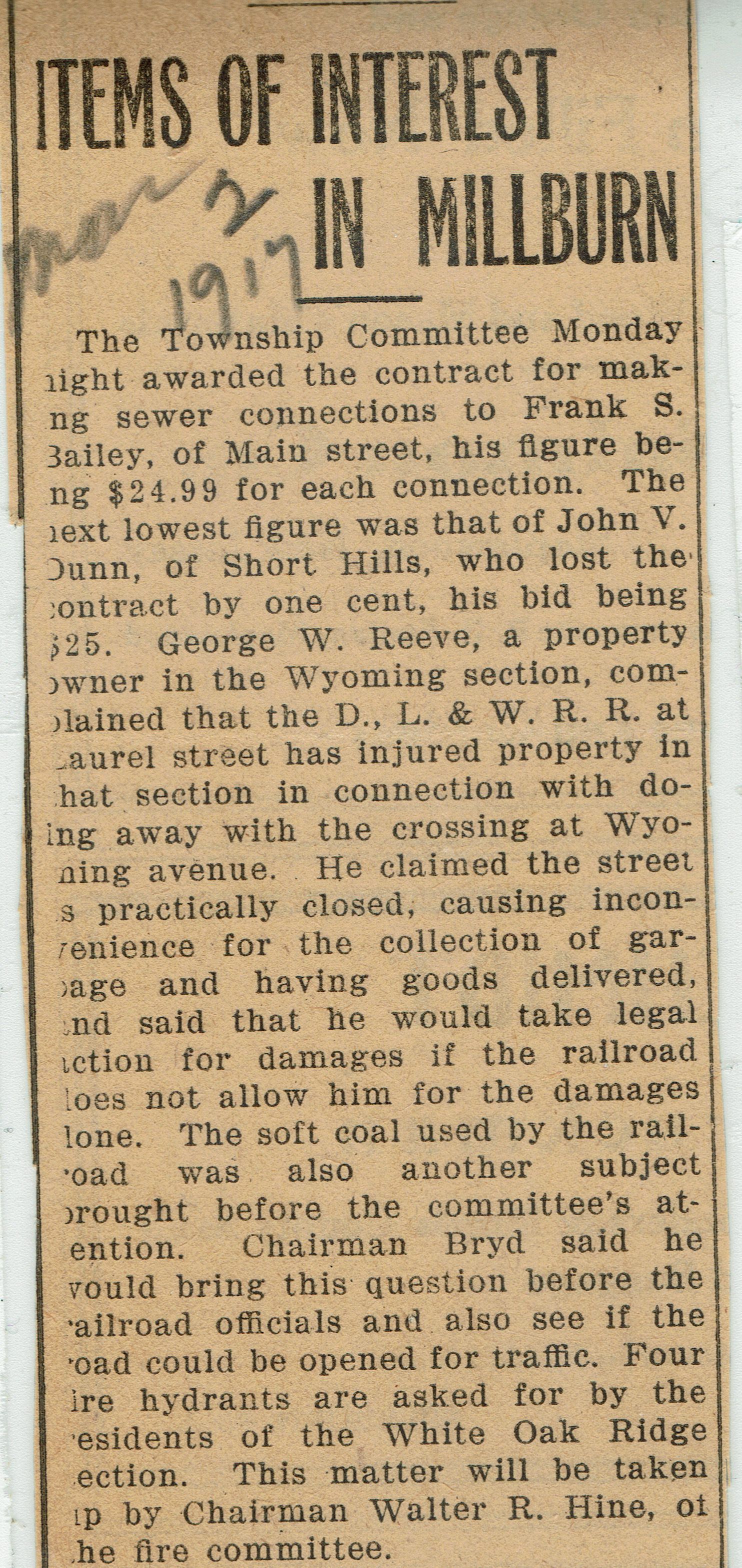 Wyoming Civic Association: Items of Interest: Township Committee, 1917