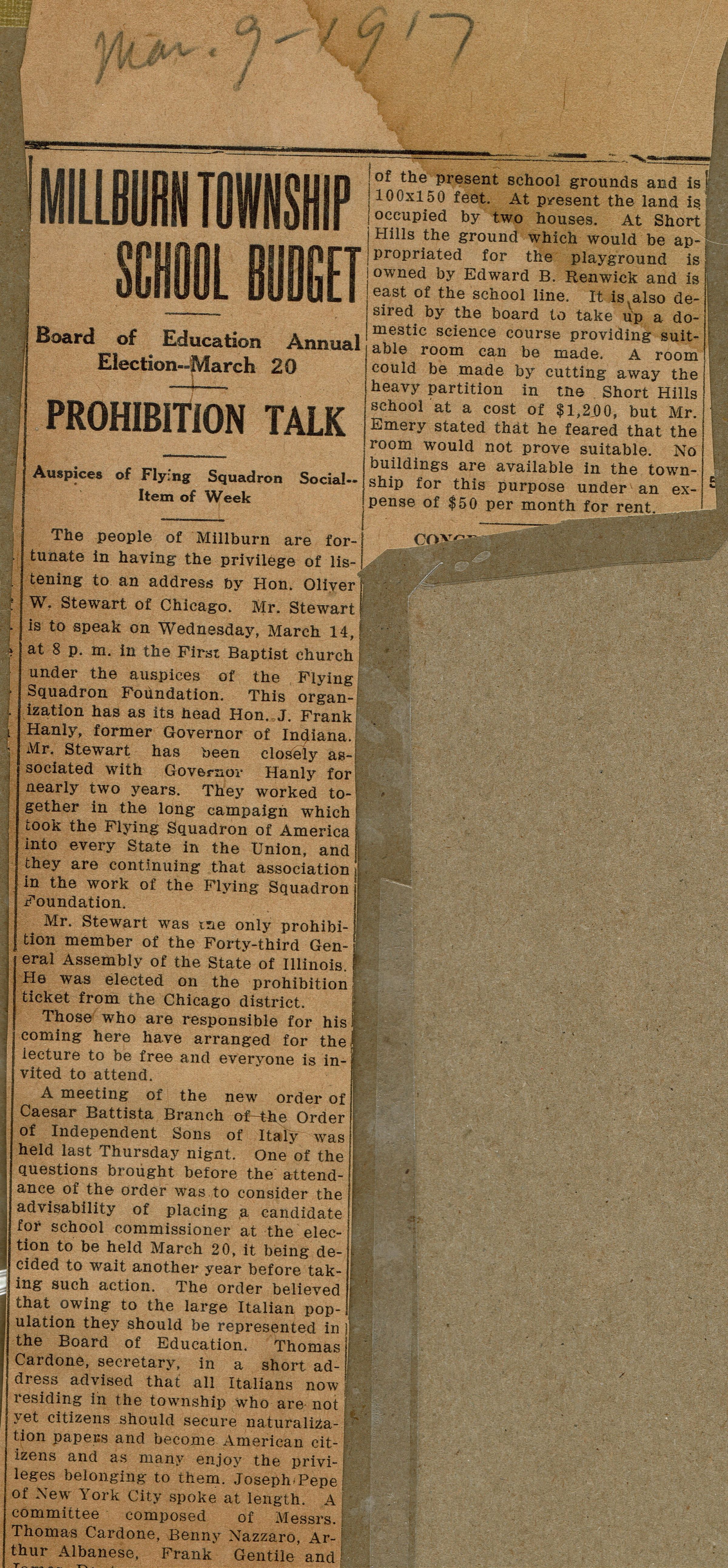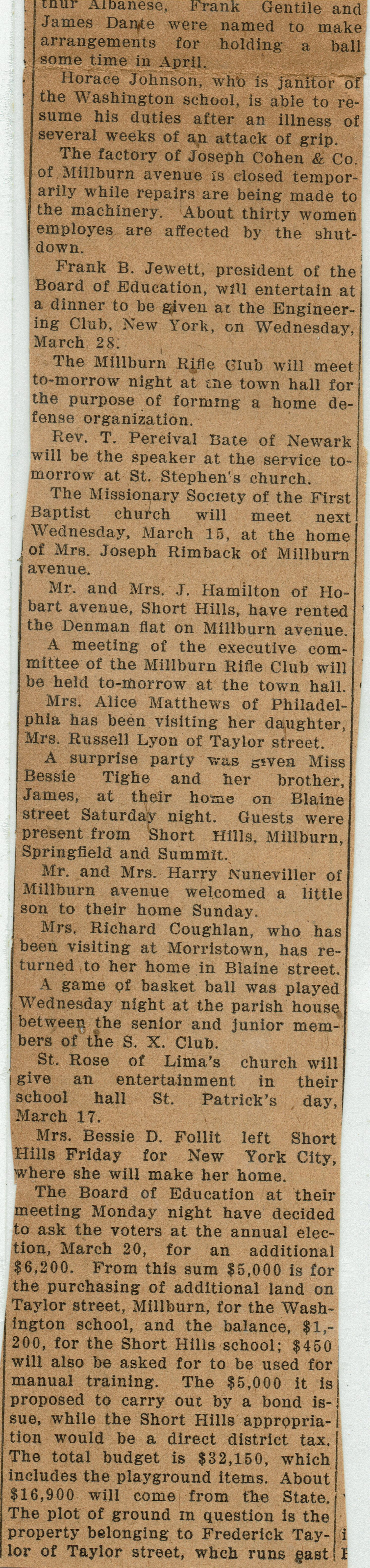 Wyoming Civic Association: Millburn School Budget, 1917