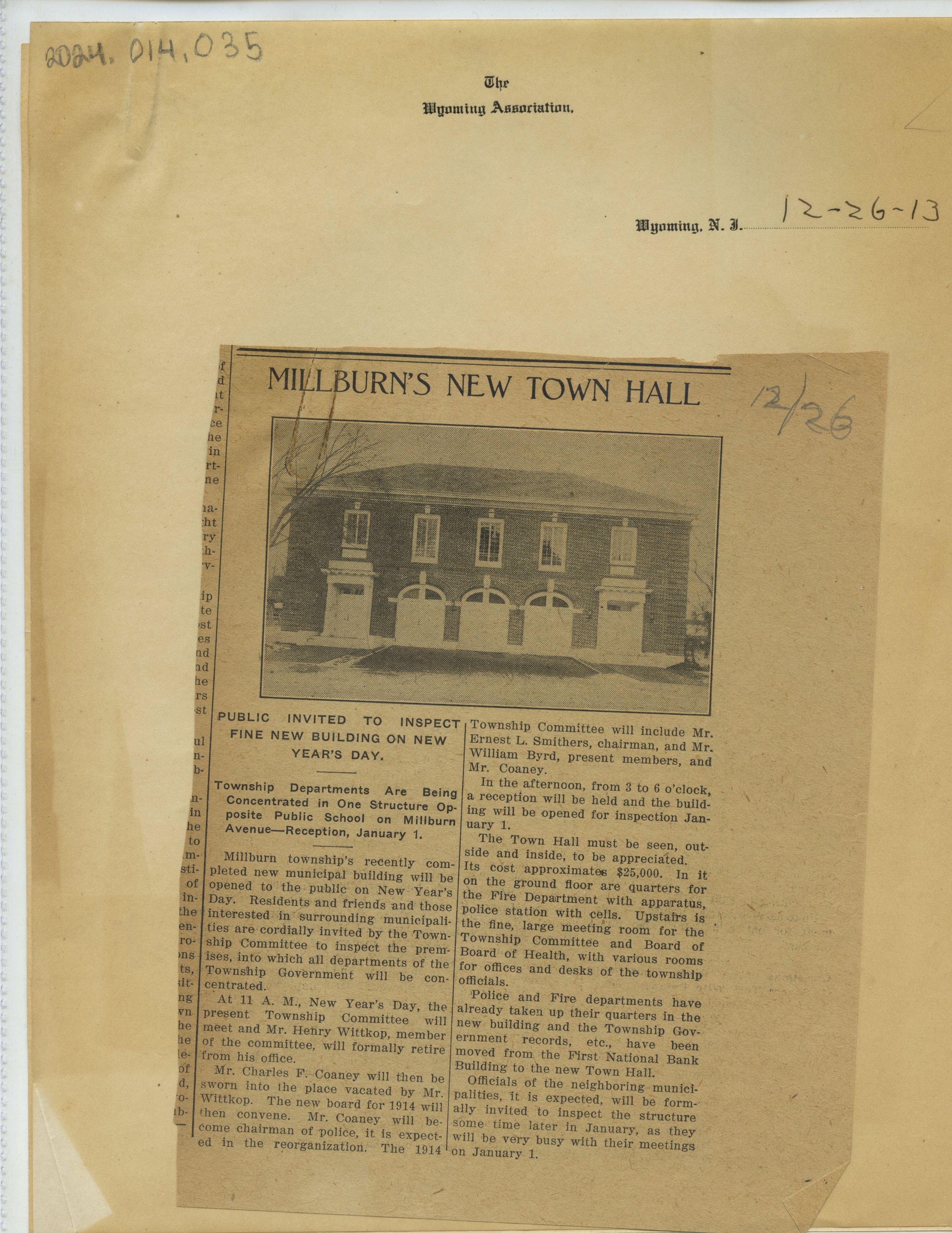 Wyoming Civic Association: Millburn's New Town Hall, 1913Entry/Object ID