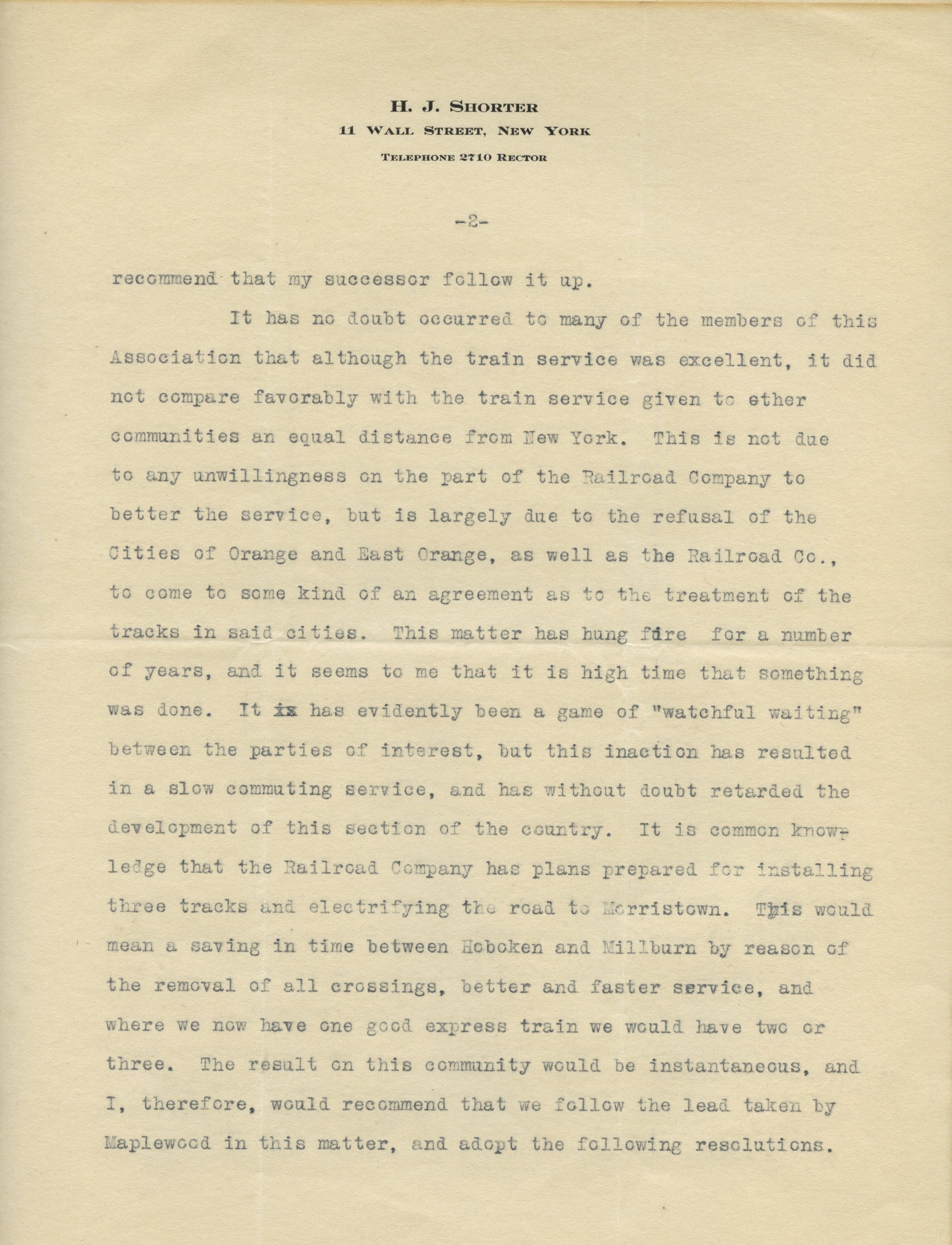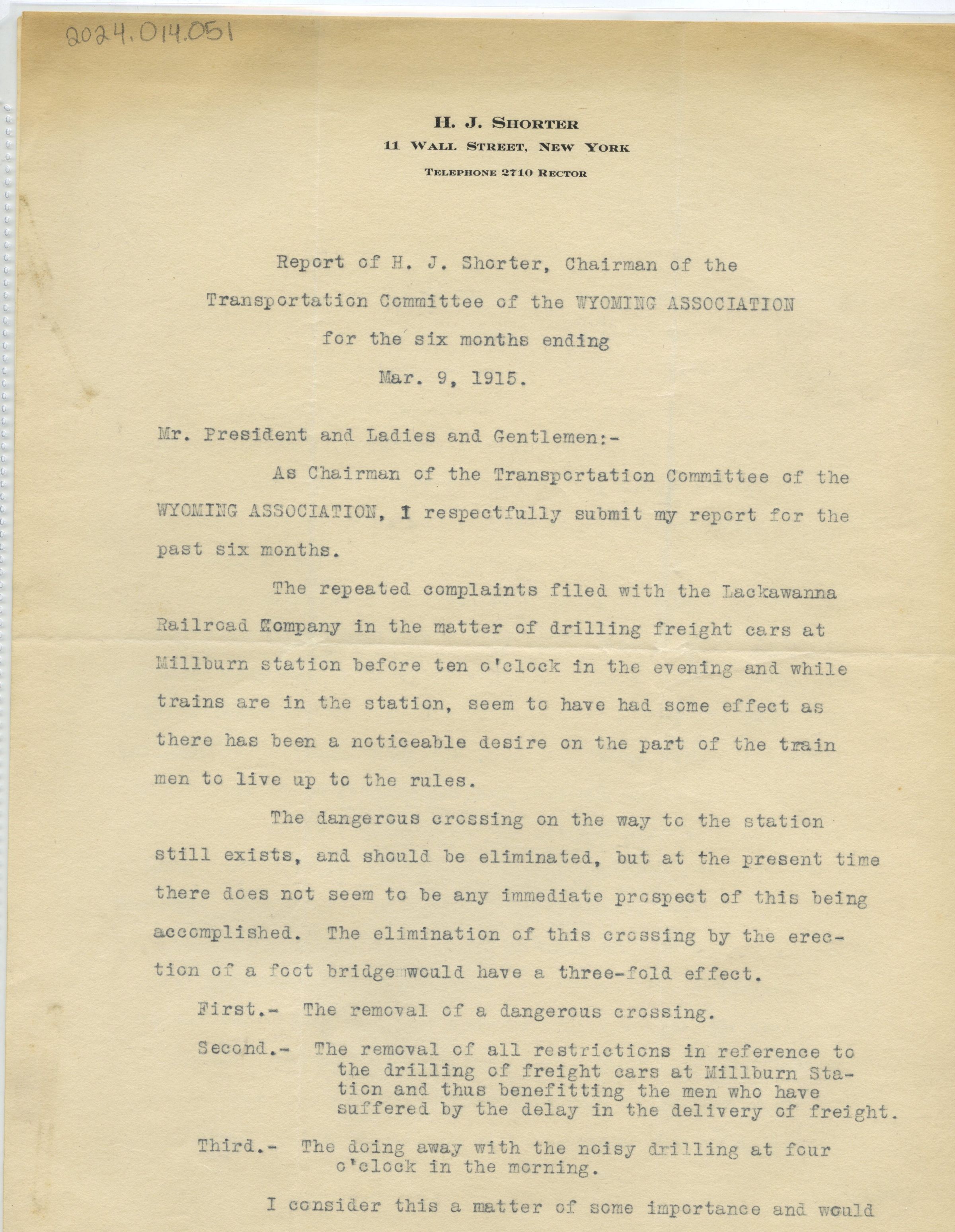 Wyoming Civic Association: Report by H.J Shorter, Chairman of the Transportation Committee, 1915Entry/Object ID