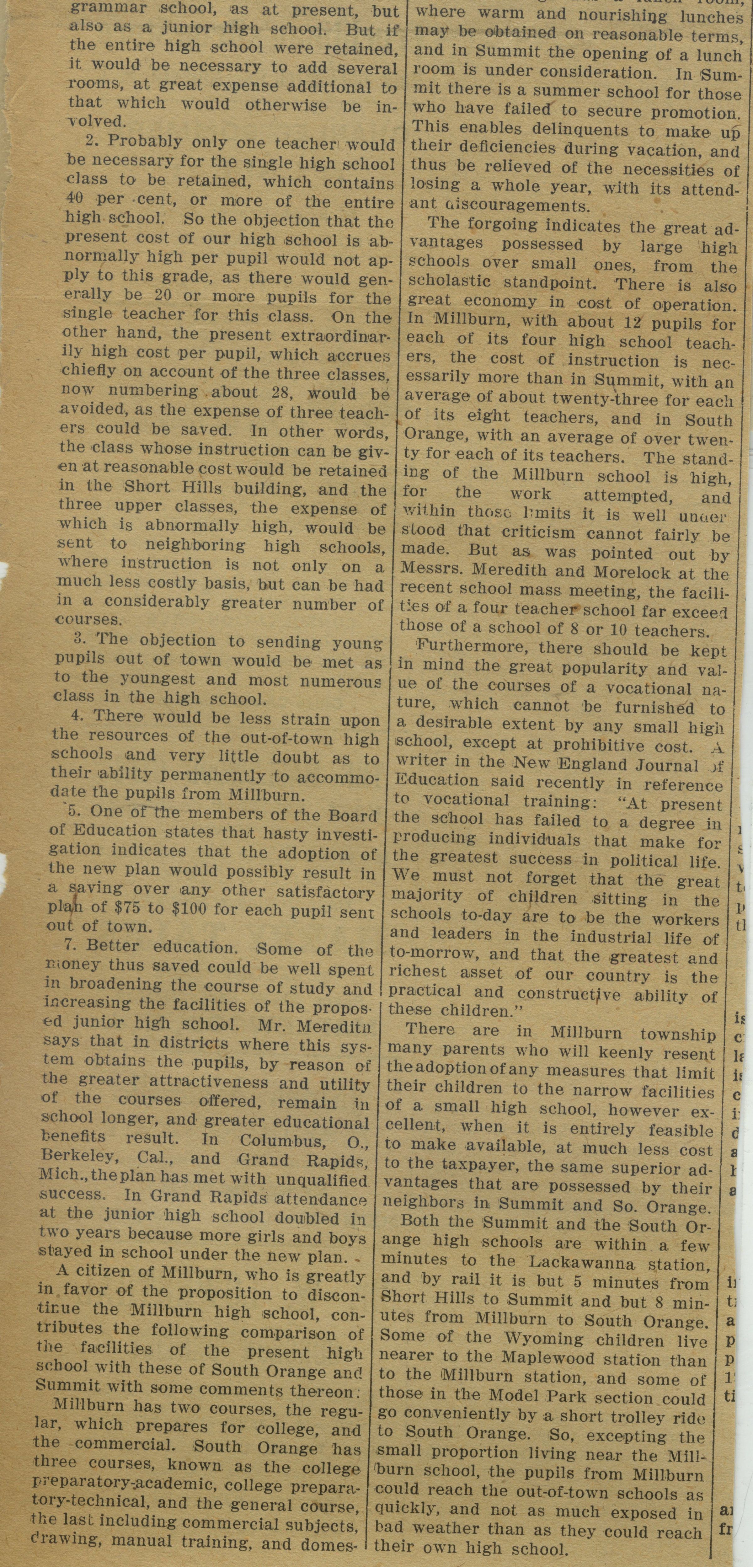 Wyoming Civic Association: Suggestion About Millburn Schools, 1914Entry/Object ID