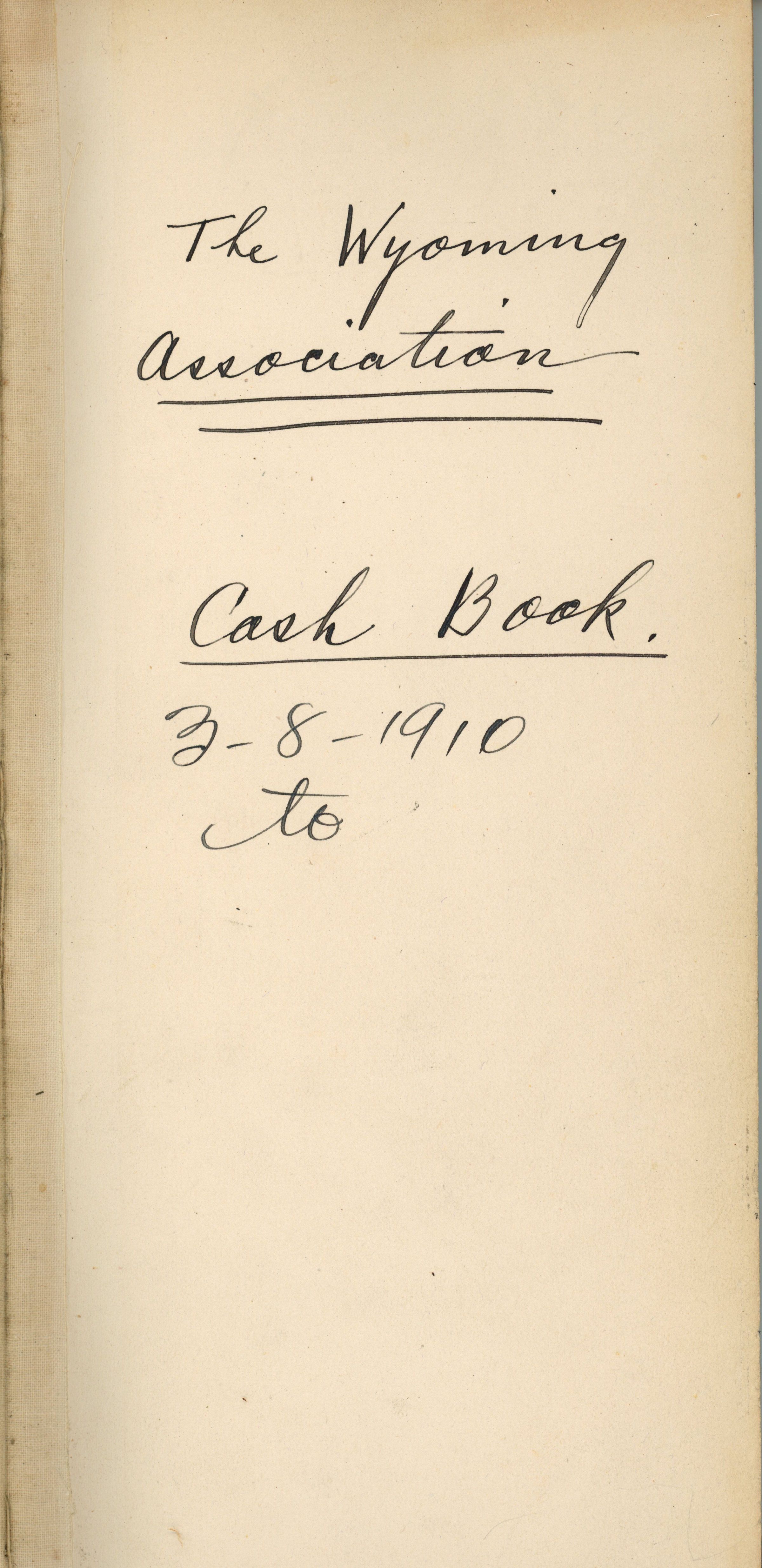 Handwritten Cash Ledger for the Wyoming Association from March 8, 1910 toCollection