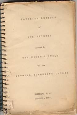 Title page is printed: "Favorite Recipes of Our Friends; Issued by the Women's Guild of the Wyoming Community Church; Millburn, N.J.; October - 1937"Collection