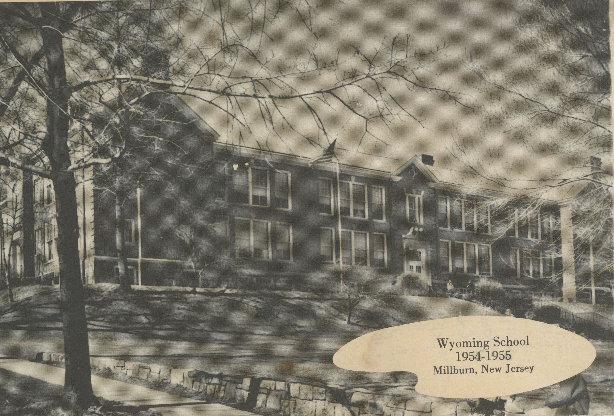 Photograph of Wyoming Elementary School used in the student Memory Book and in publicity for the year 1954-5. This copy came from the 1955 Wyoming School PTA Publicity scrapbook.Acquisition