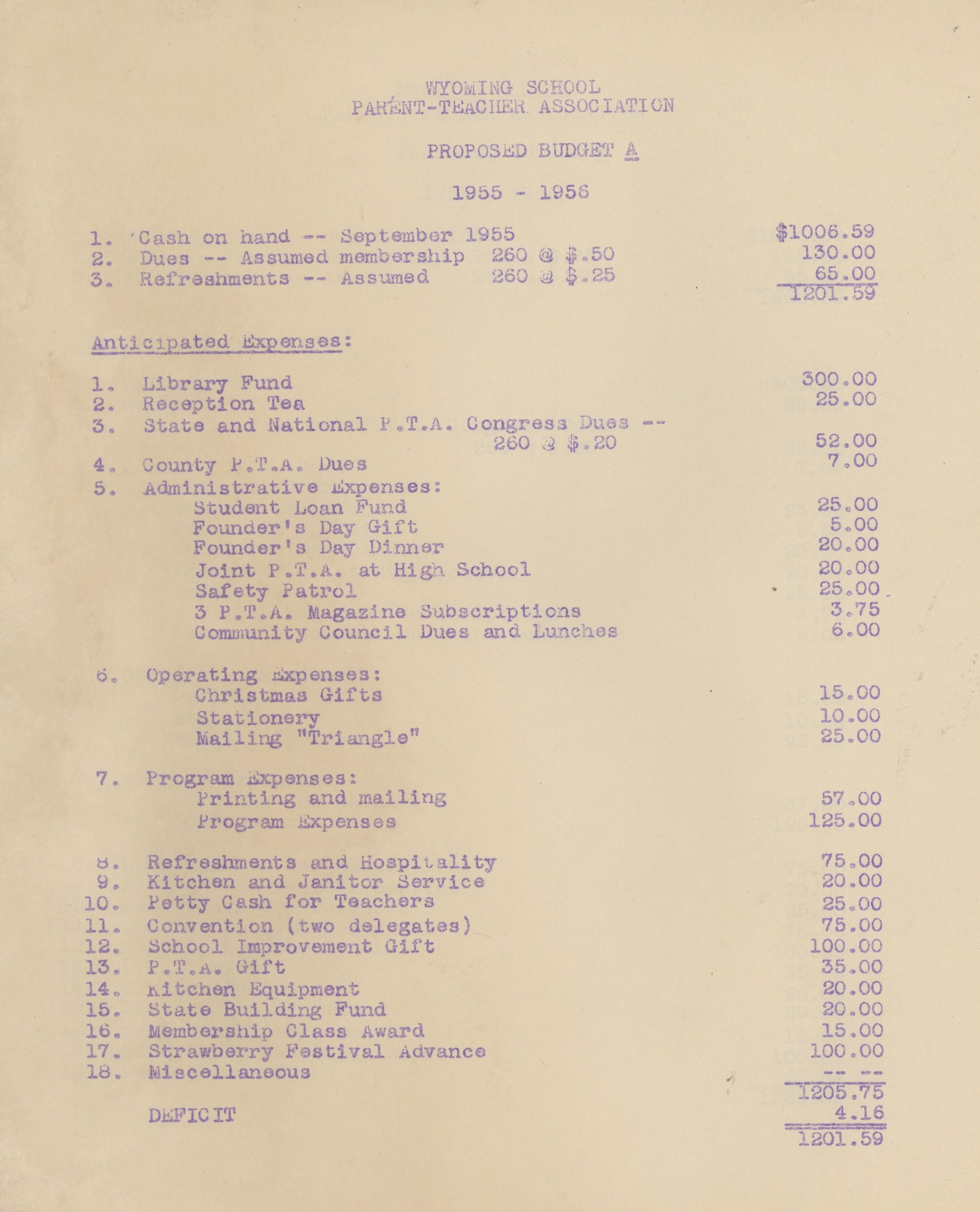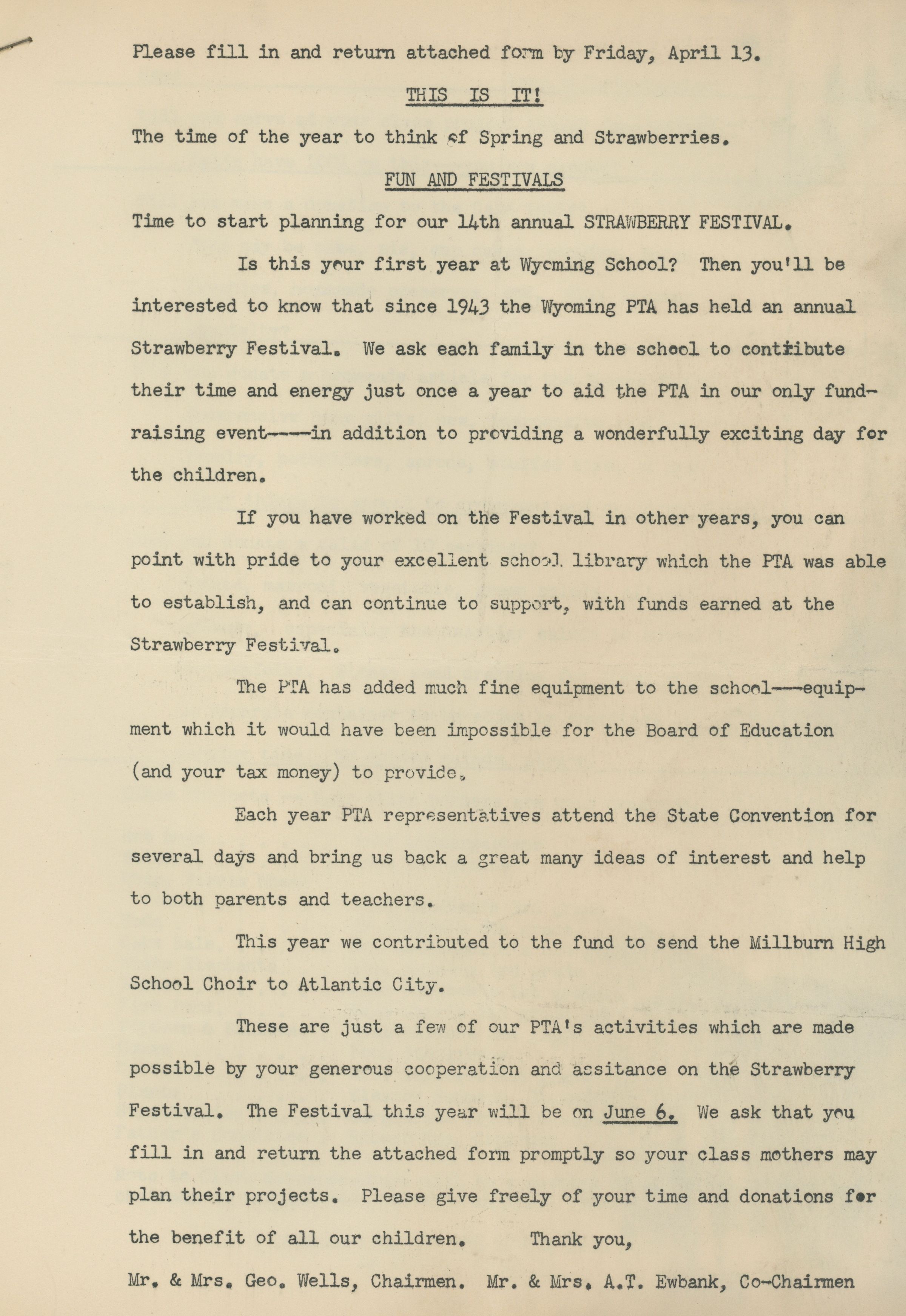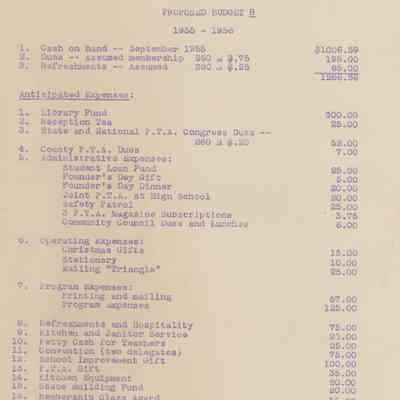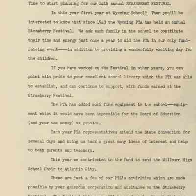 Materials from Wyoming School PTA Publicity Binder including PTA Budget and Strawberry Festival Plans.Acquisition