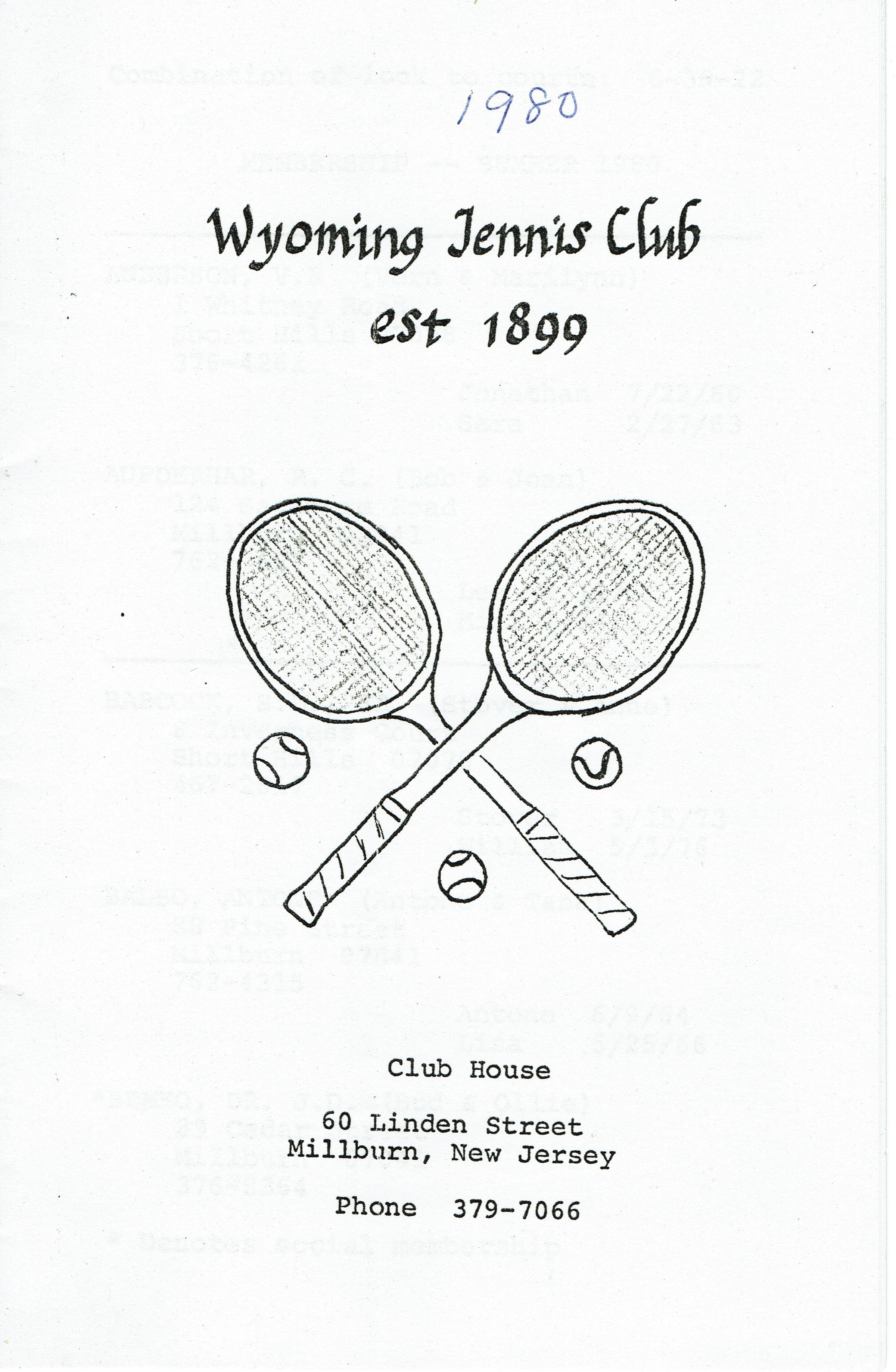 Membership directory for the Wyoming Tennis Club, 1980. 14 pages, mimeographed and stapled directory.Acquisition