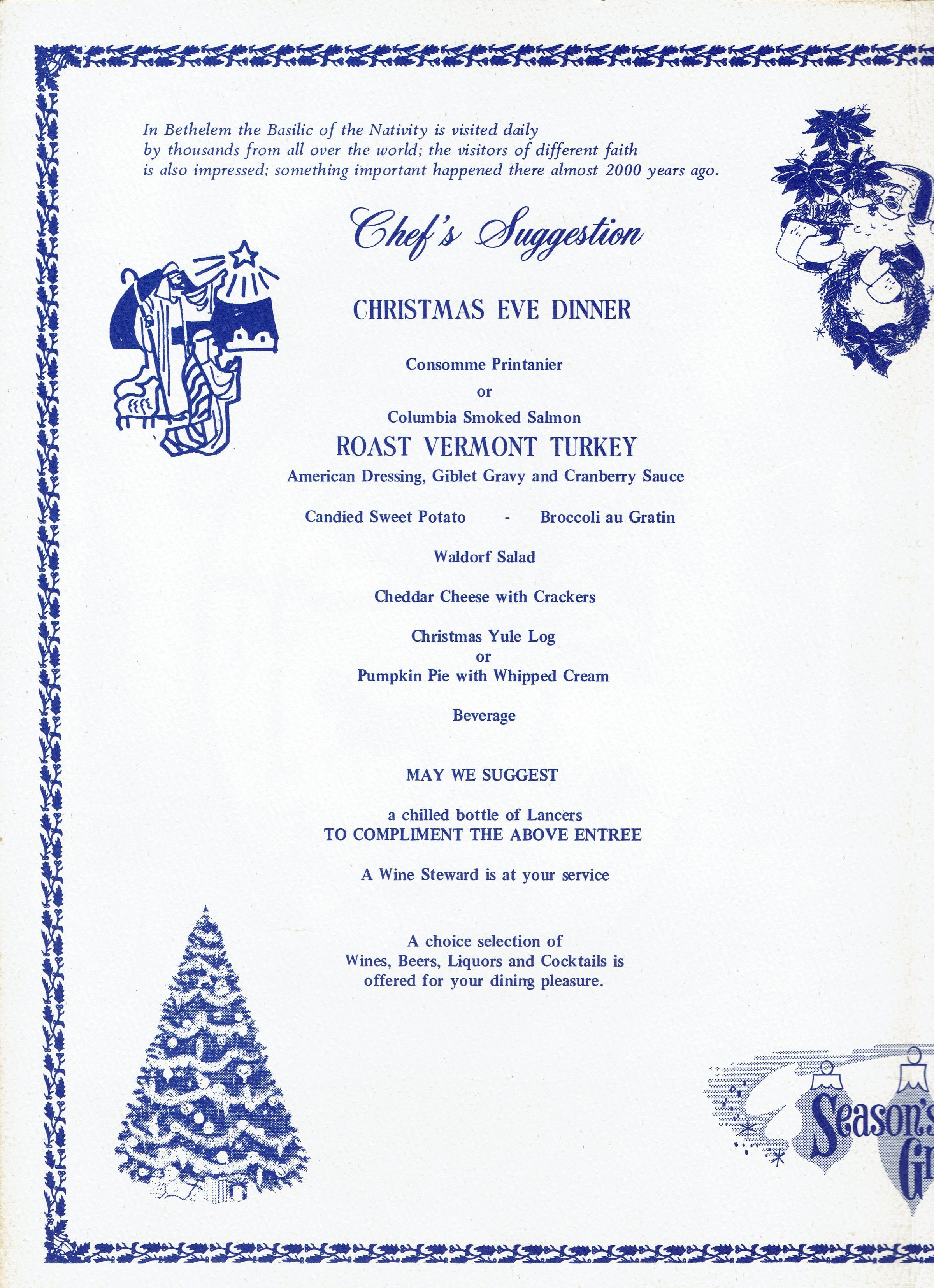 Yogg & Company: Christmas Eve Dinner Menu, 1971Entry/Object ID