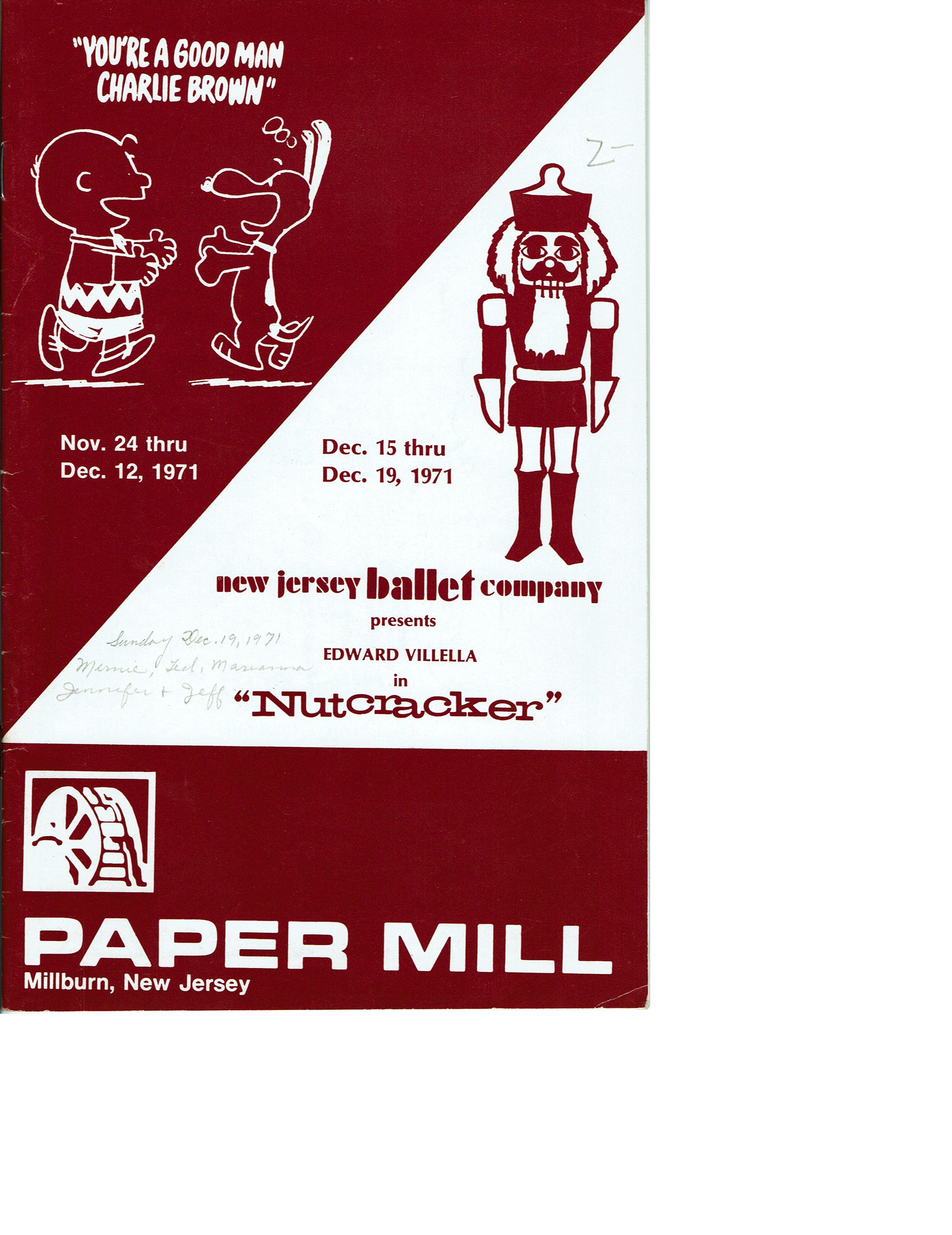 You're a Good Man Charlie Brown and New Jersey Ballet Nutcracker, 1971 Paper Mill Playhouse ProgramEntry/Object ID