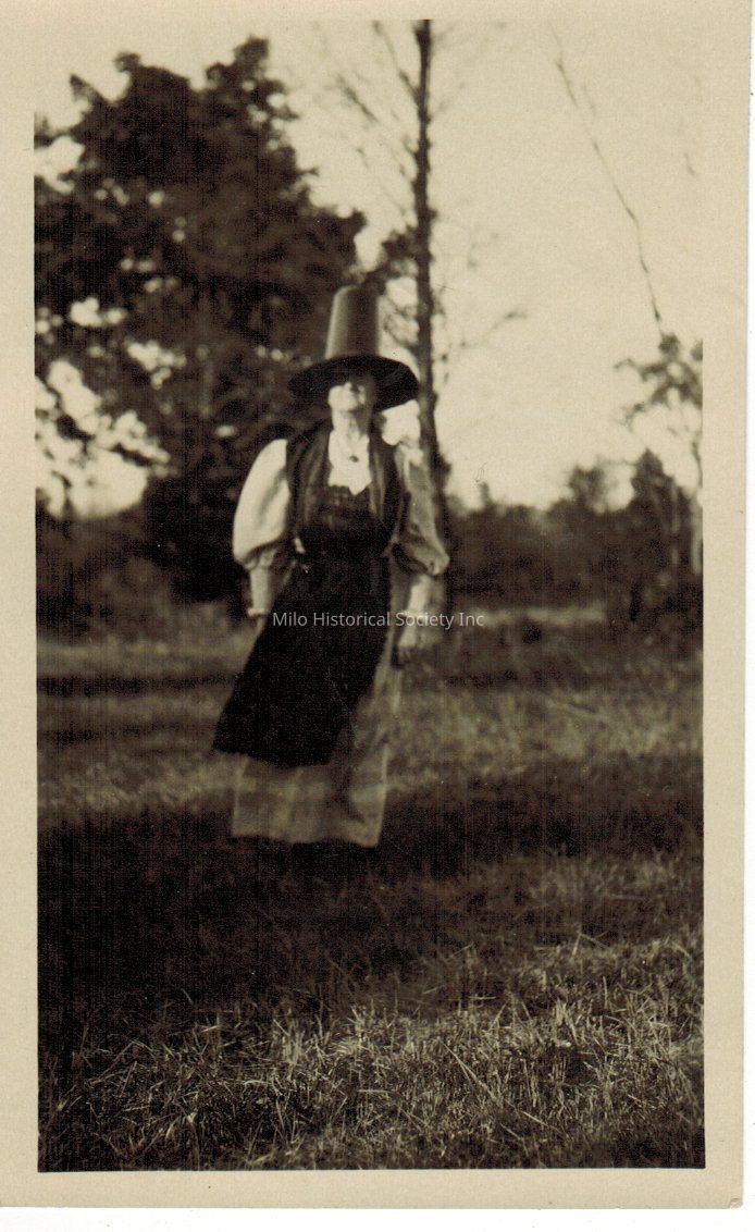 1923 Centenniel Pageant on Piscataquis River Bank - Carrie Sands Peakes with tall black hat onCollection