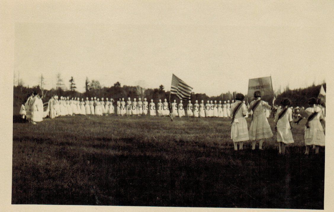 1923 Centenniel Pageant on Piscataquis River Bank -many women in costume and sign saying "Sweden"Collection