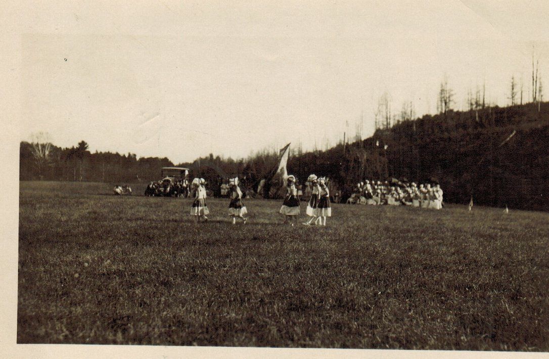 1923 Centenniel Pageant on Piscataquis River Bank - Shows girls with strange hats on & other people in backgroundCollection