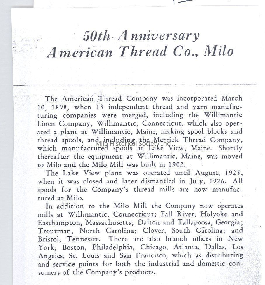 50th Anniversary of Americal Thread Merrick Thread Company