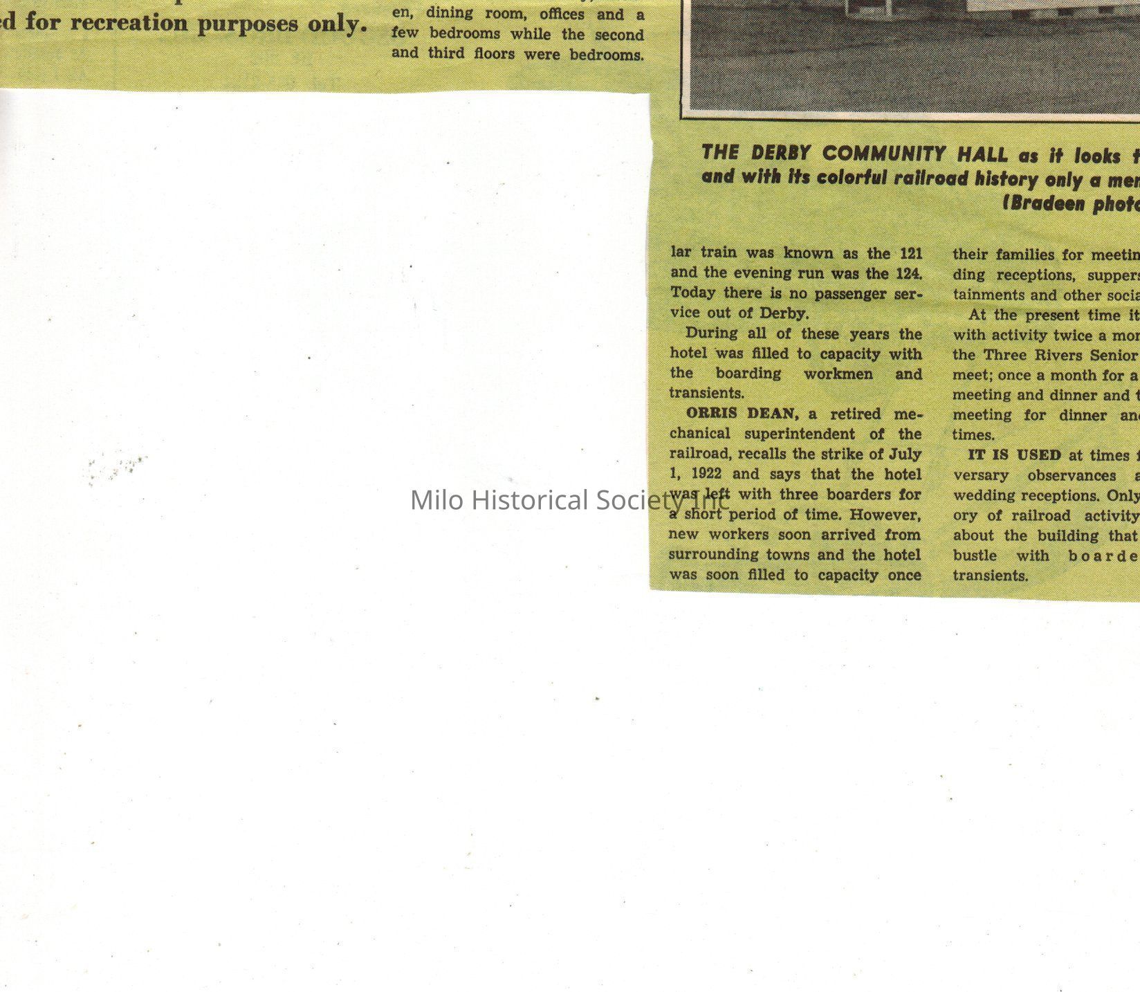 Steward House in Derby, Piscataquis Hotel in Derby, Derby Community Hall, Derby Shops, Bangor & Aroostook Railroad, Kineo House, Three Rivers Senior CitizansArchive Details