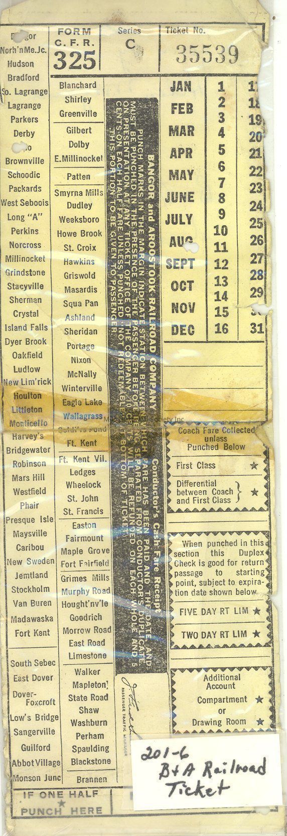 Bangor and Aroostook Railroad, BAR, B&A, TicketLocation