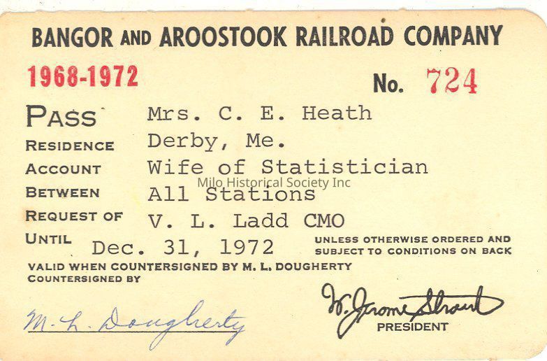 B&ARR Pass for Mrs. C.E. Heath - 1968-1972