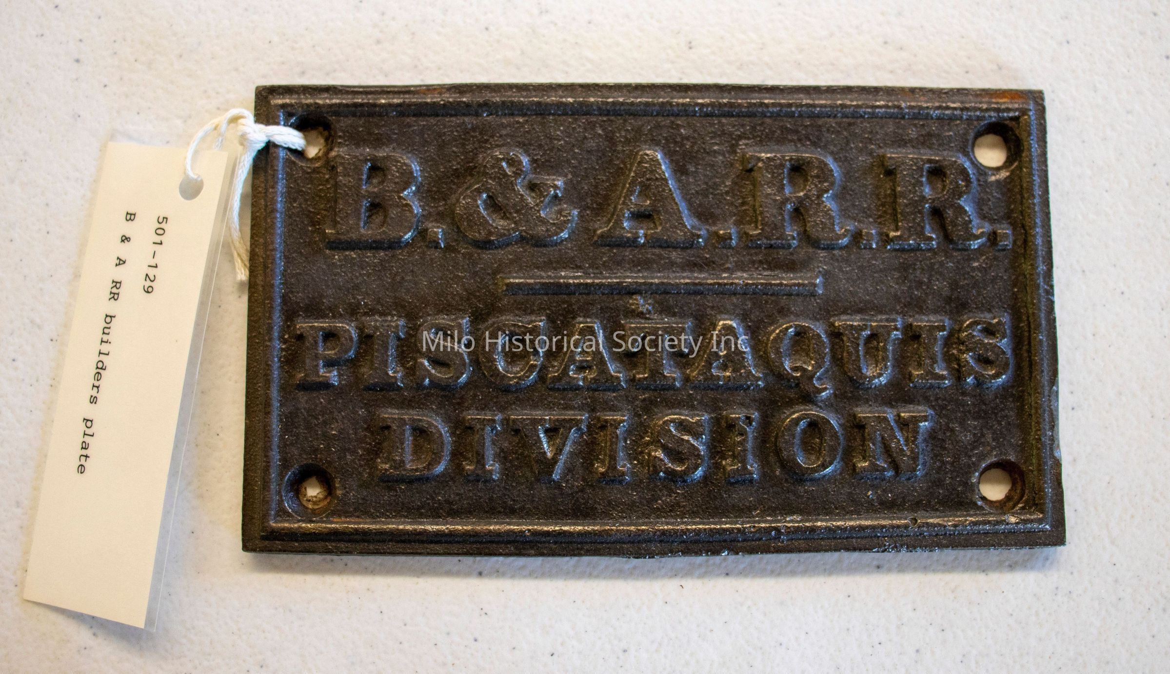 B&ARR Piscataquis Division - Metal Builders Plate - Placed on coach #209 when built in 1899Collection