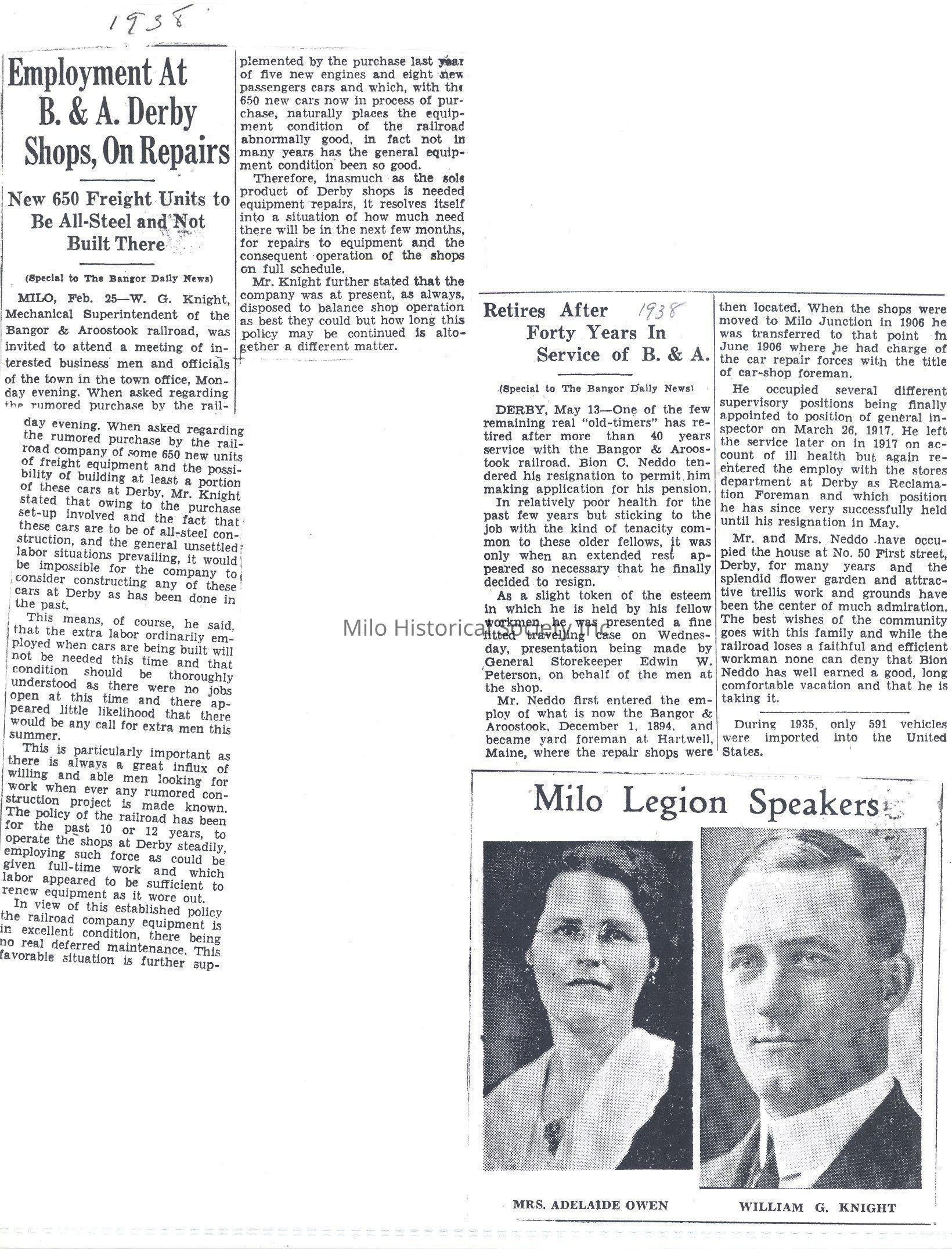 Railroad news American Legion speakers Bion Neddo retirres from B&A