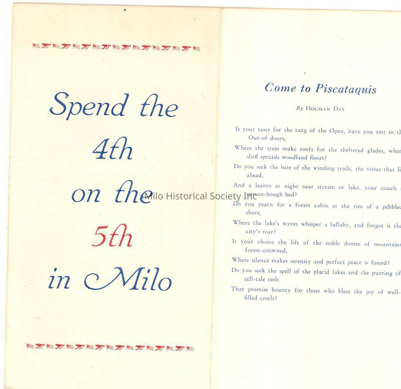Masons, 125 Anniversary of Piscataquis Lodge, American Thread, Town of Milo, 125th Anniversary Piscataquis Lodge #44 A. F. & A. M., Piscataquis Lodge A. F. & A. M., Town of Milo (125th Anniv.), American Thread Co. (50th Anniv.)