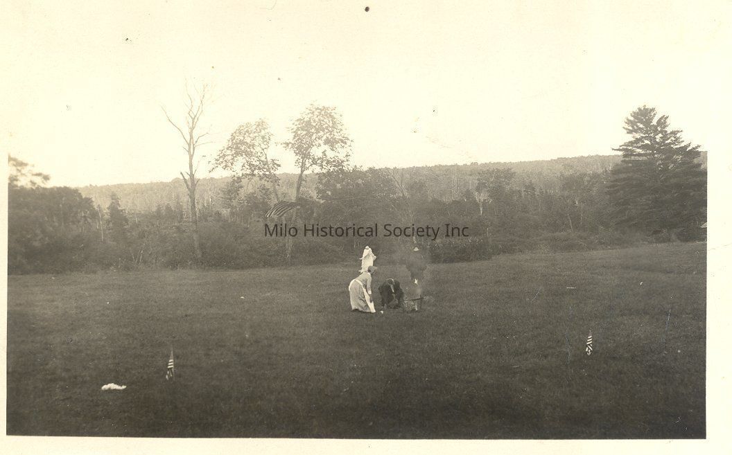 Centennial Pageant - Woman & 2 men with small Am. Flags