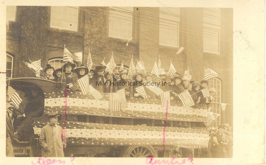 B&ARR Car Decorated & full of women for the 1923 Cent. Cele. Parade-In front of B&A Building in Derby