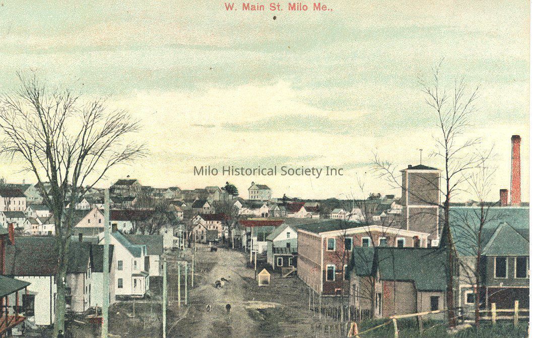 West Main St., Milo looking towards town - Houses on left were moved to make room for Am. Thread drying sheds - One of these buildings was a Cheese Factory-4 colored,3 B&WCollection