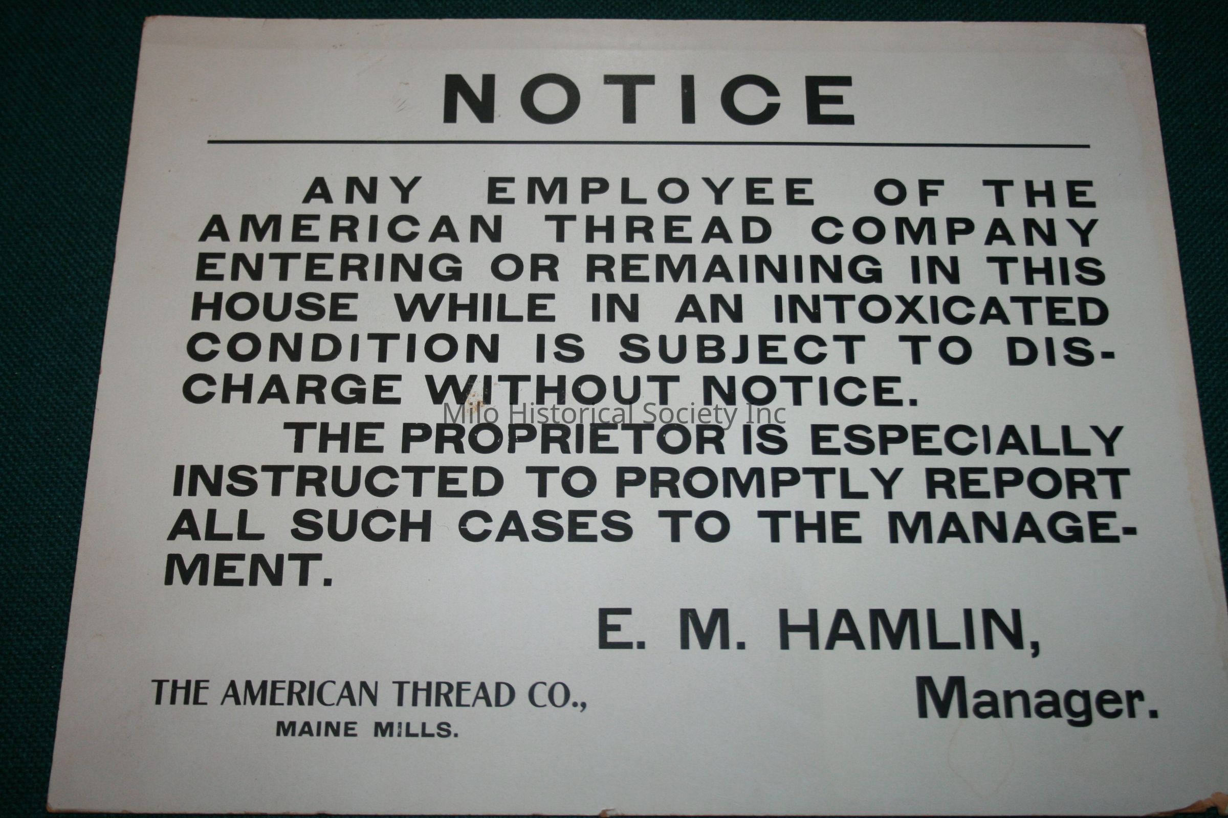 Am. Thread Mill Notice on Intoxication - 2 duplicates