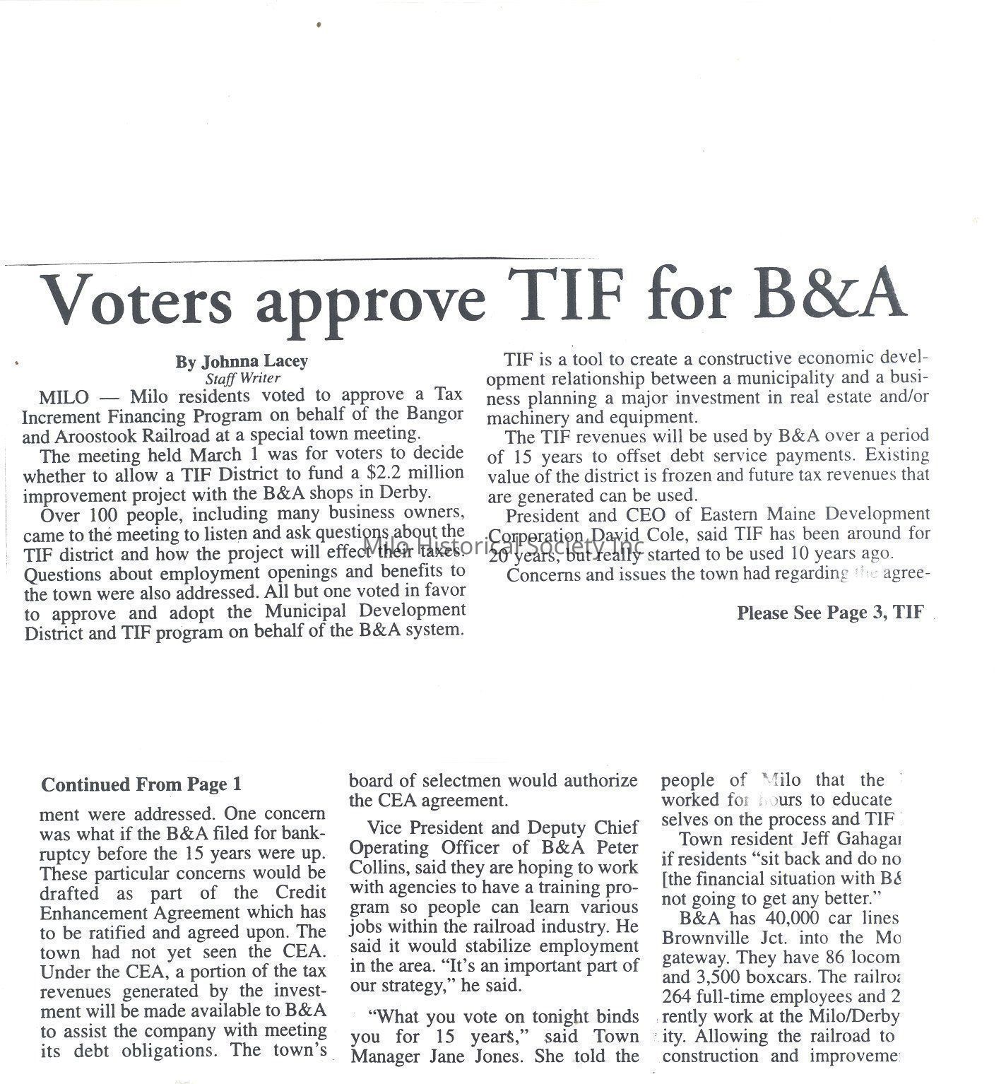Voters approve Tax Increment Financing for B&A