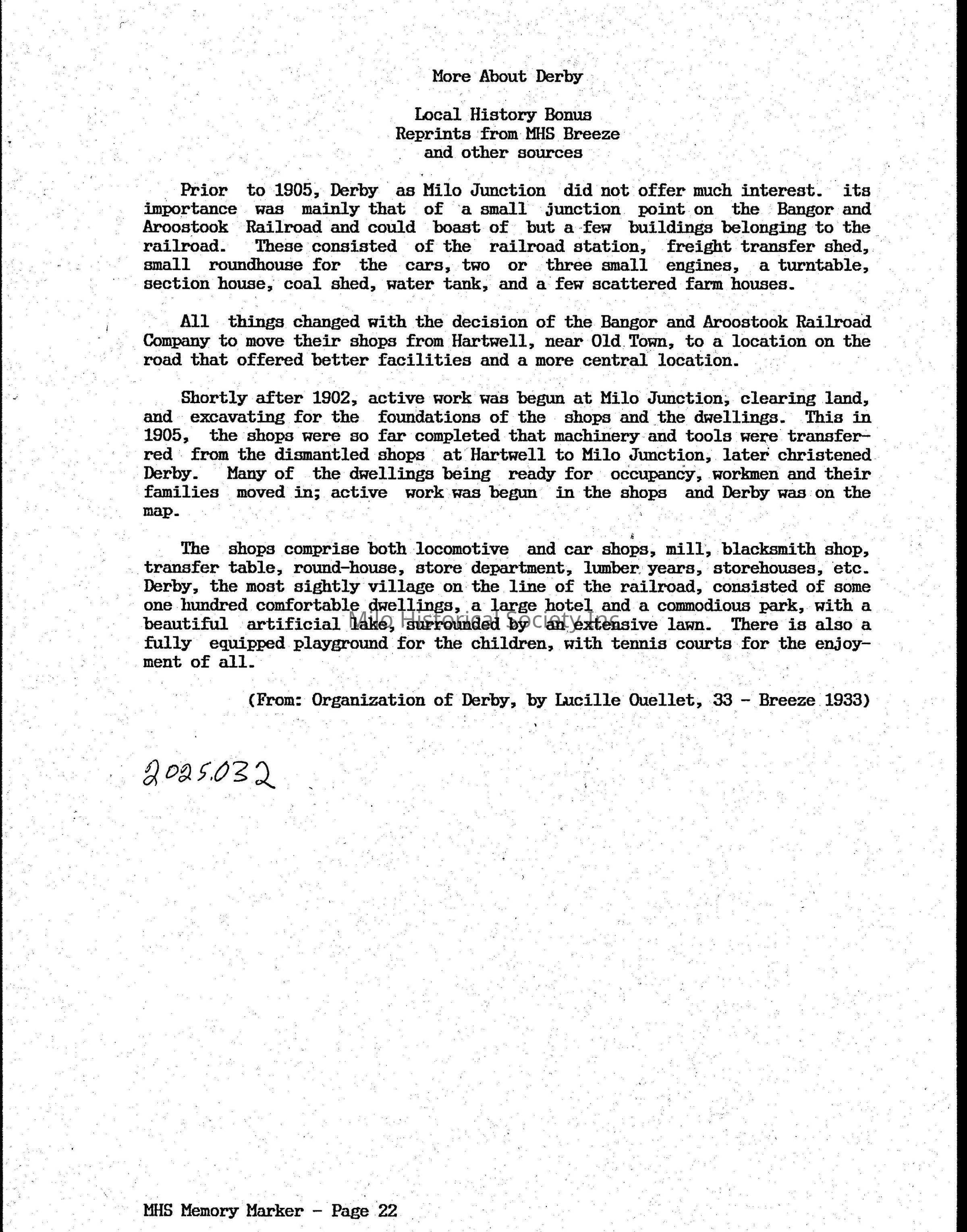 Milo Junction, Derby, Bangor and Aroostook RailroadLocation
