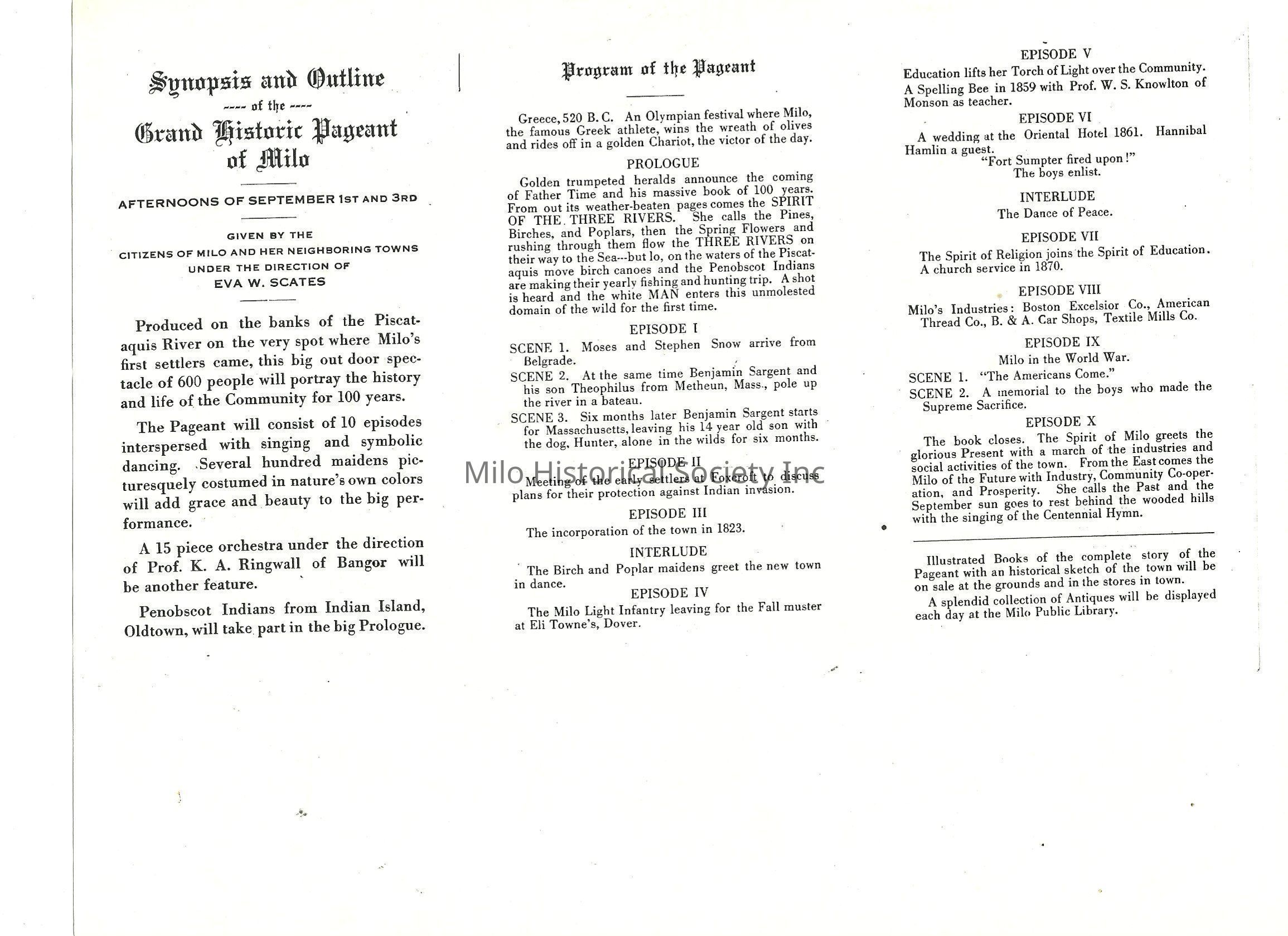 Centennial Celebration, 1923 Pageant, Program of Grand Historic Pageant of MiloLocation