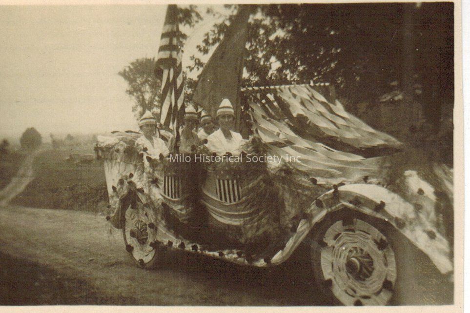 Parade during Centennial Celebration-On the back of one of the large pictures it says "American Legion Auxiliary Float-1st. Prize"-2 duplicates lg. pictures1 in lg. Photo File, 1 in Small & 3 duplicate small picutres with negative in Photo FileCollection