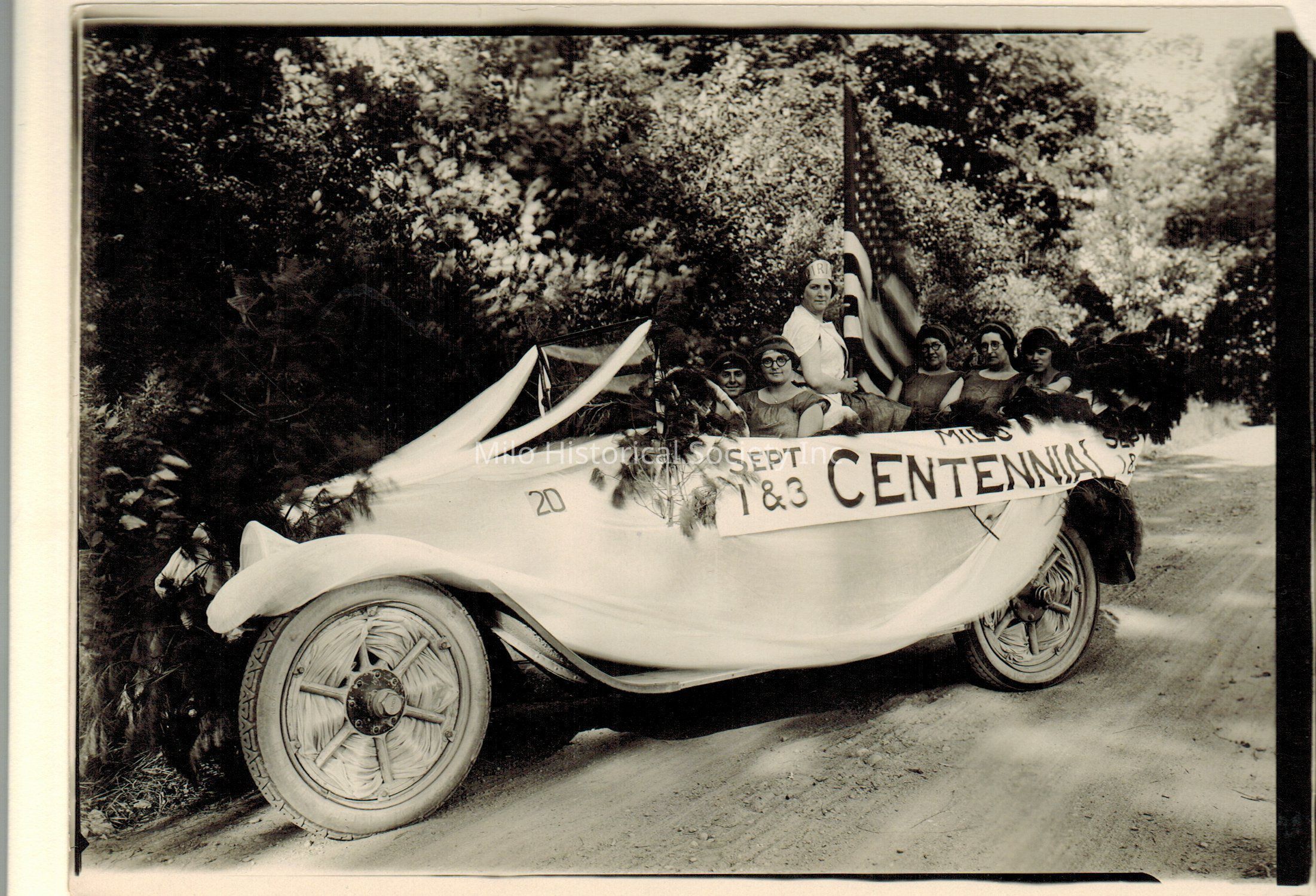 Decorated Car with 6 women & American Flag - Cent. Cele. 1923Collection