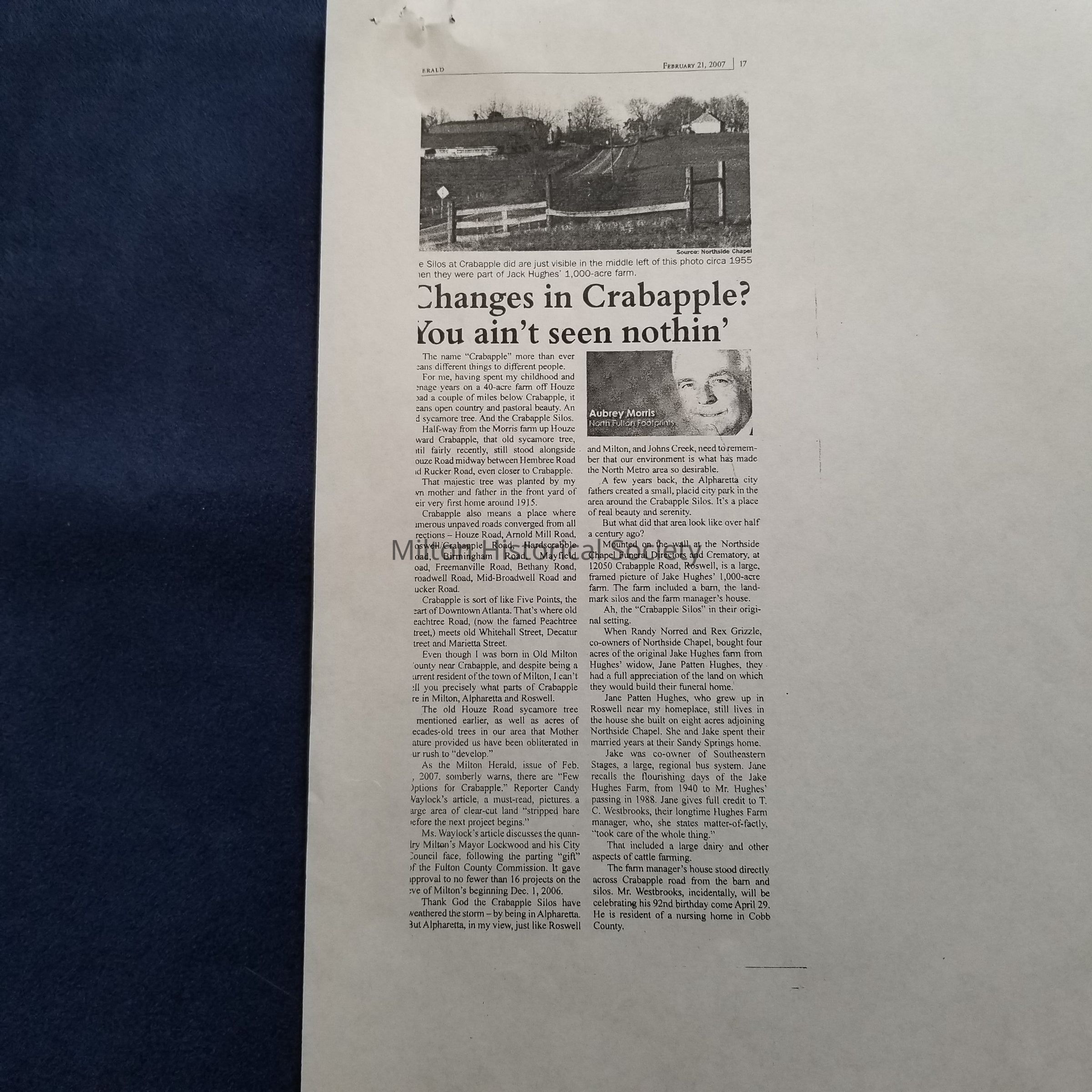 The numerous trees and large tracts of pasture land of years past are gone. The Crabapple area of Milton has seen tremendous development in recent years and is expected to continue growing.Collection