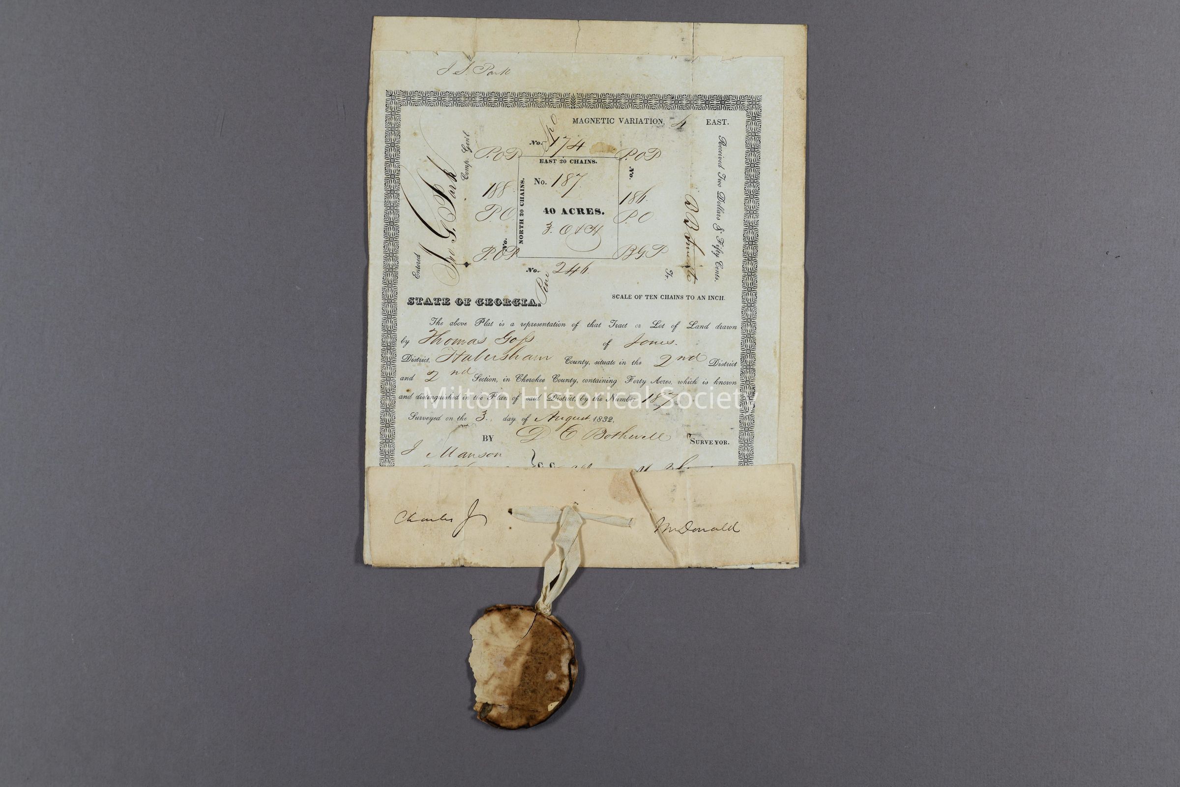 Section from a land lot of the now city of Milton from the then Cherokee County District 2 Section 2 land lottery. Forty acres were granted to Thomas Gofs.Collection