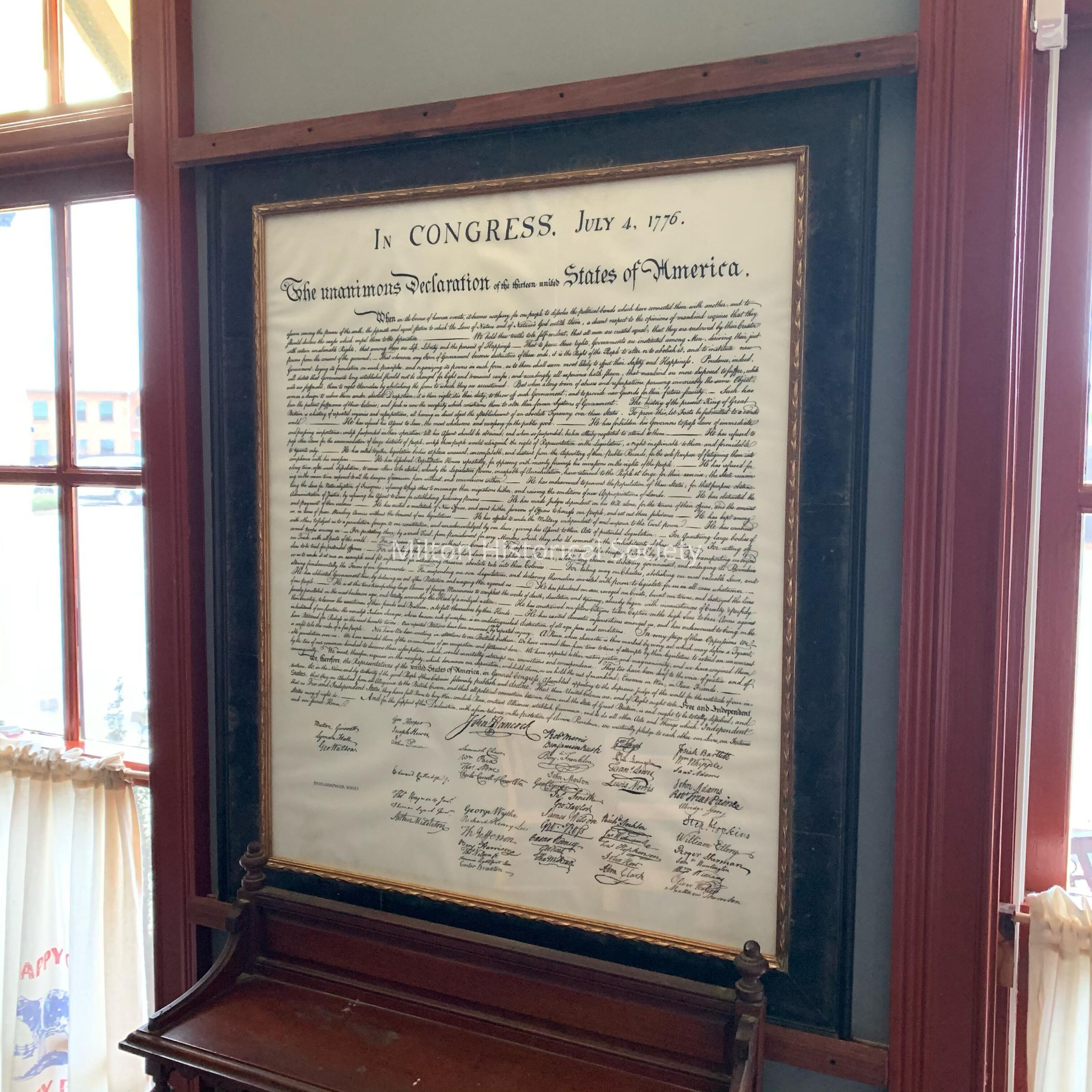 The original Declaration was written with quill and ink on a parchment likely manufactured in England. By the early 1800's the original was beginning to darken due to iron in the ink. Then Secretary of State, John Quincy Adams commissioned William Stone to engrave a coppler plate facsimile. From that plate, 201 parchment facsimiles, were printed in 1823. Only 31 of these are known to exist and are kept by the government or large institutions.