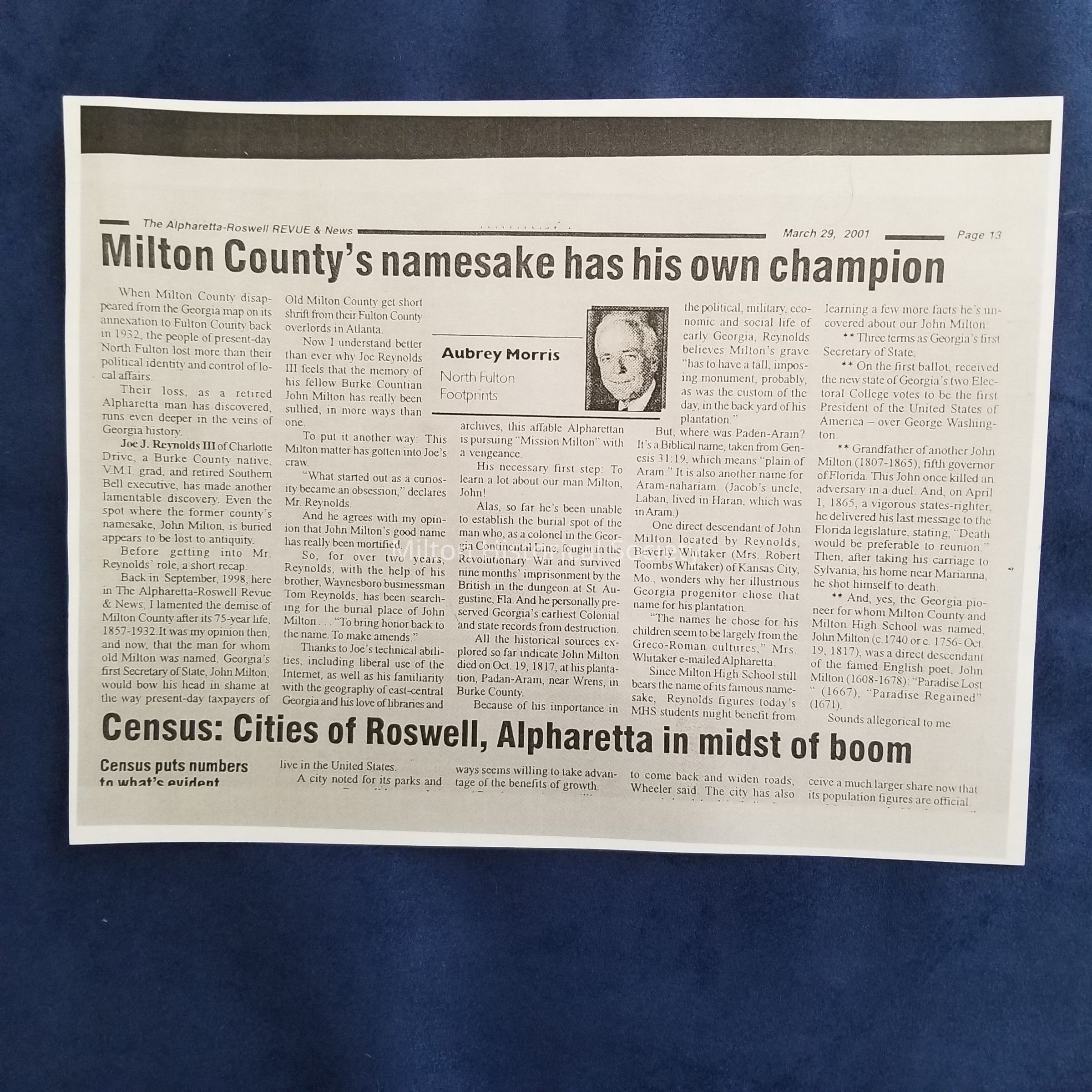 Newspaper clipping from the Alpharetta-Roswell Revue & NewsContext